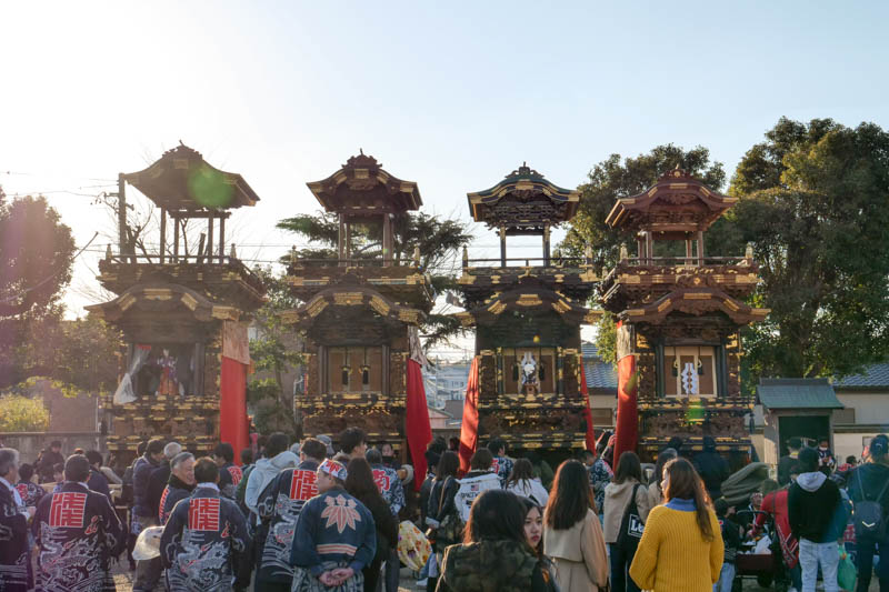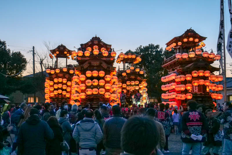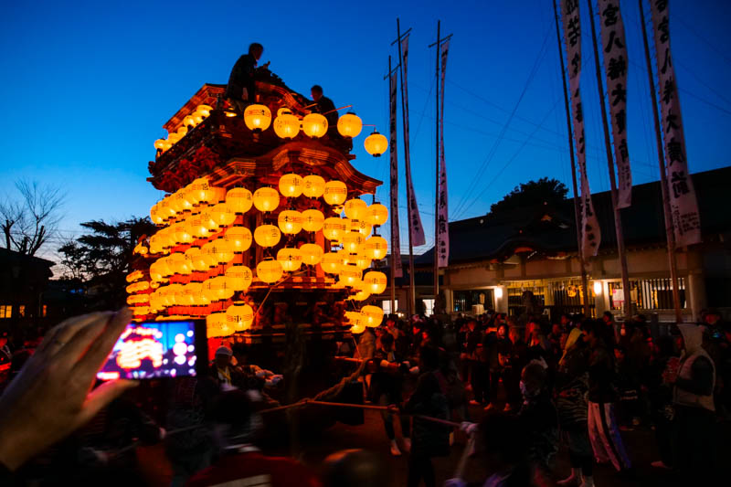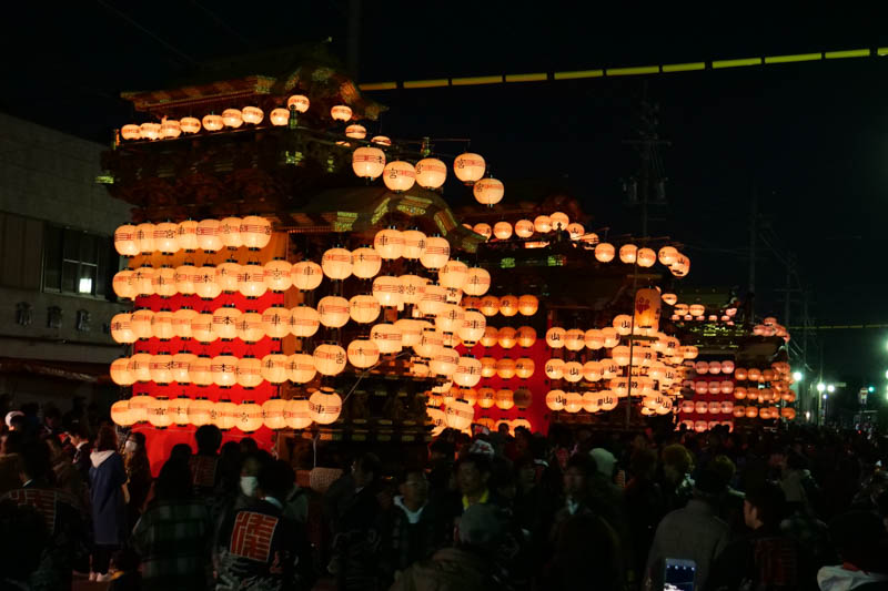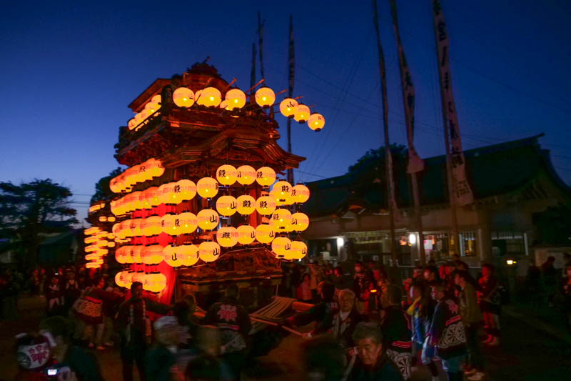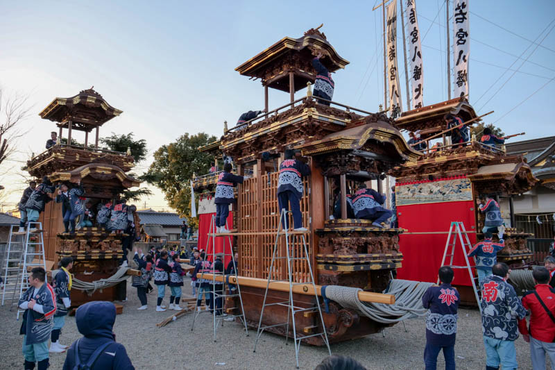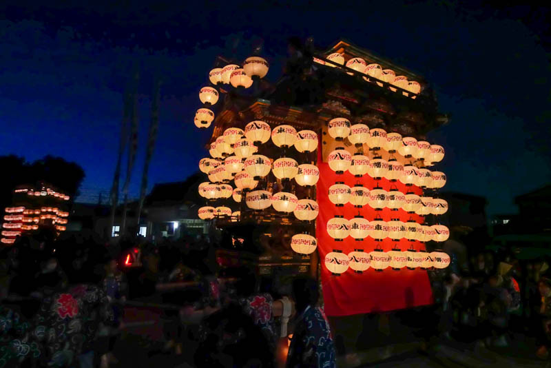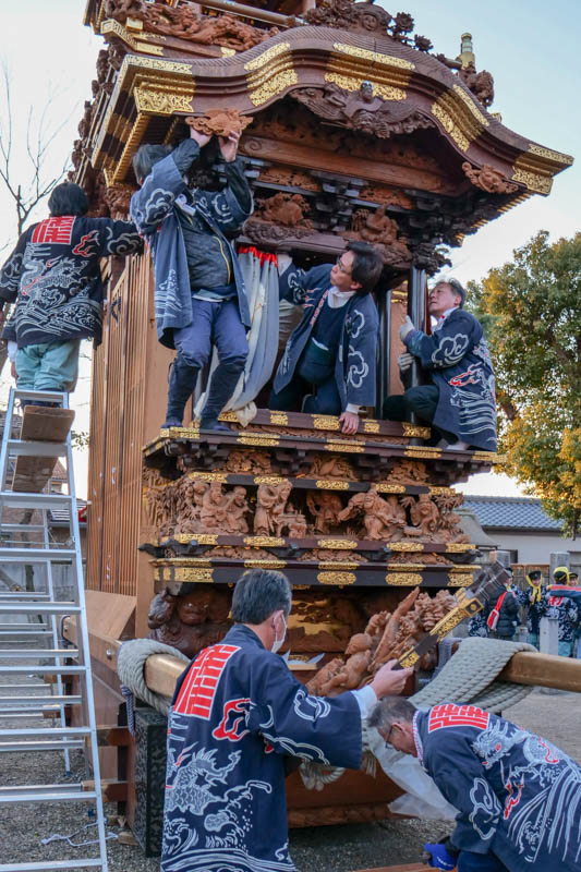 脇障子などの彫刻や手高欄を外して提灯を飾ります