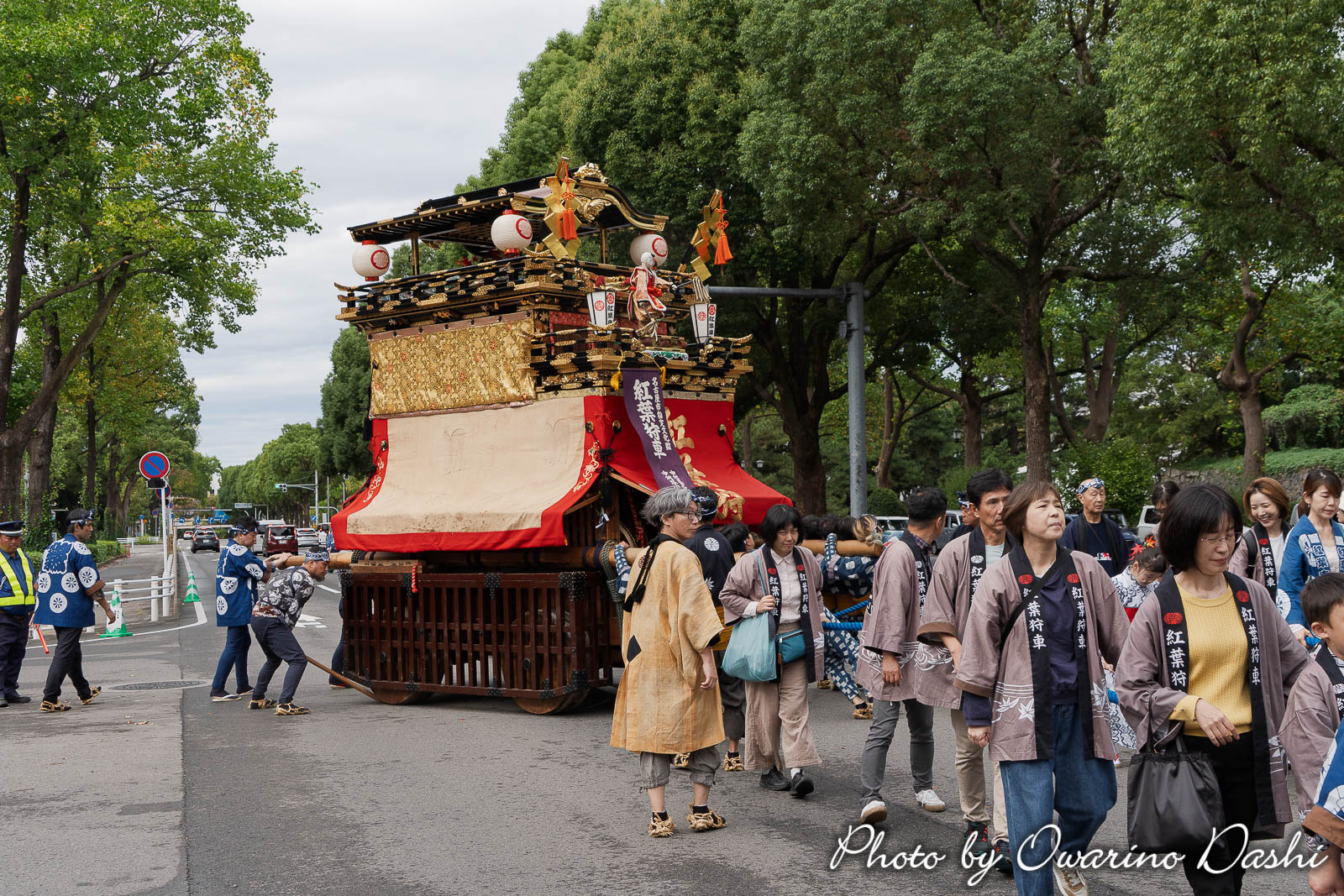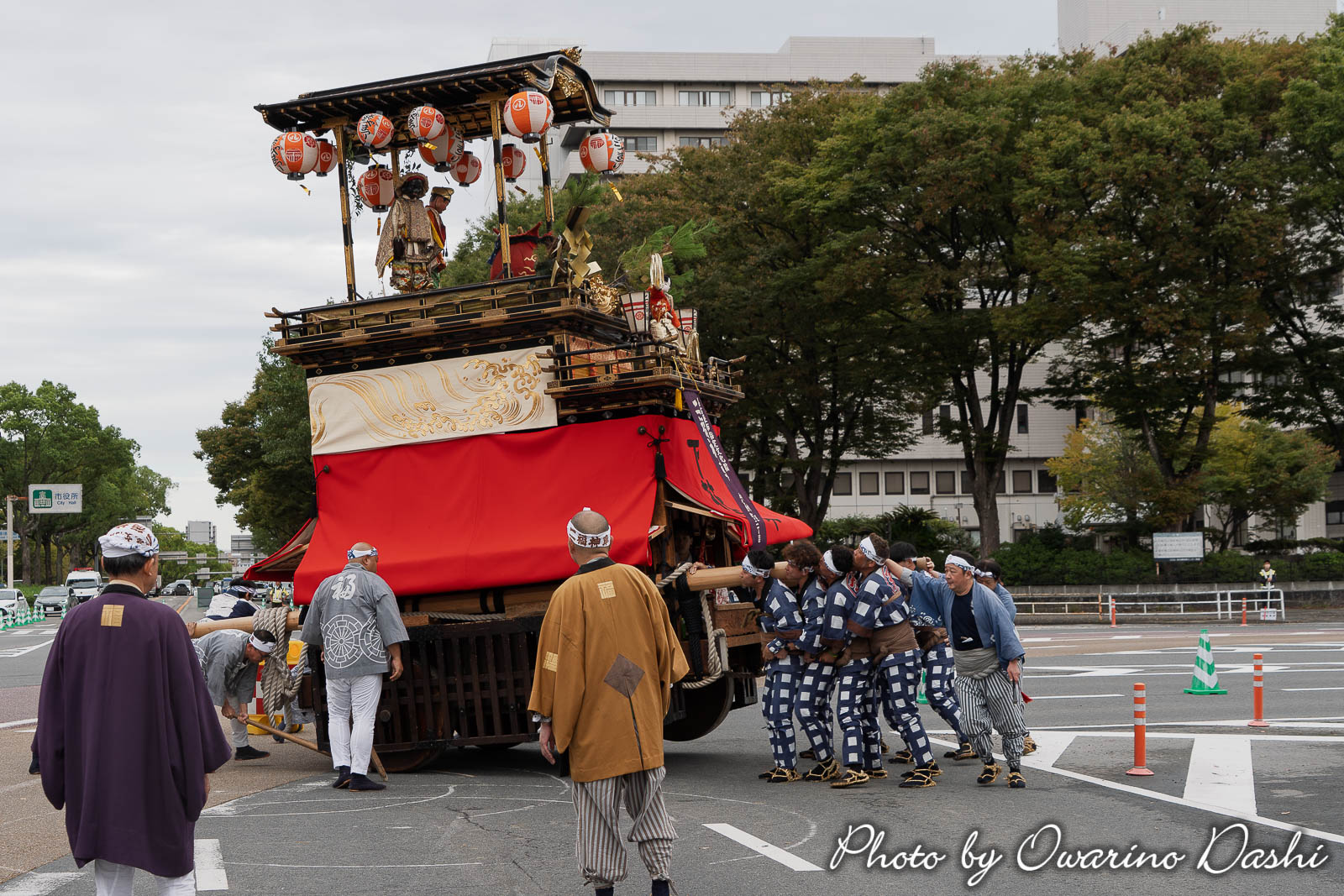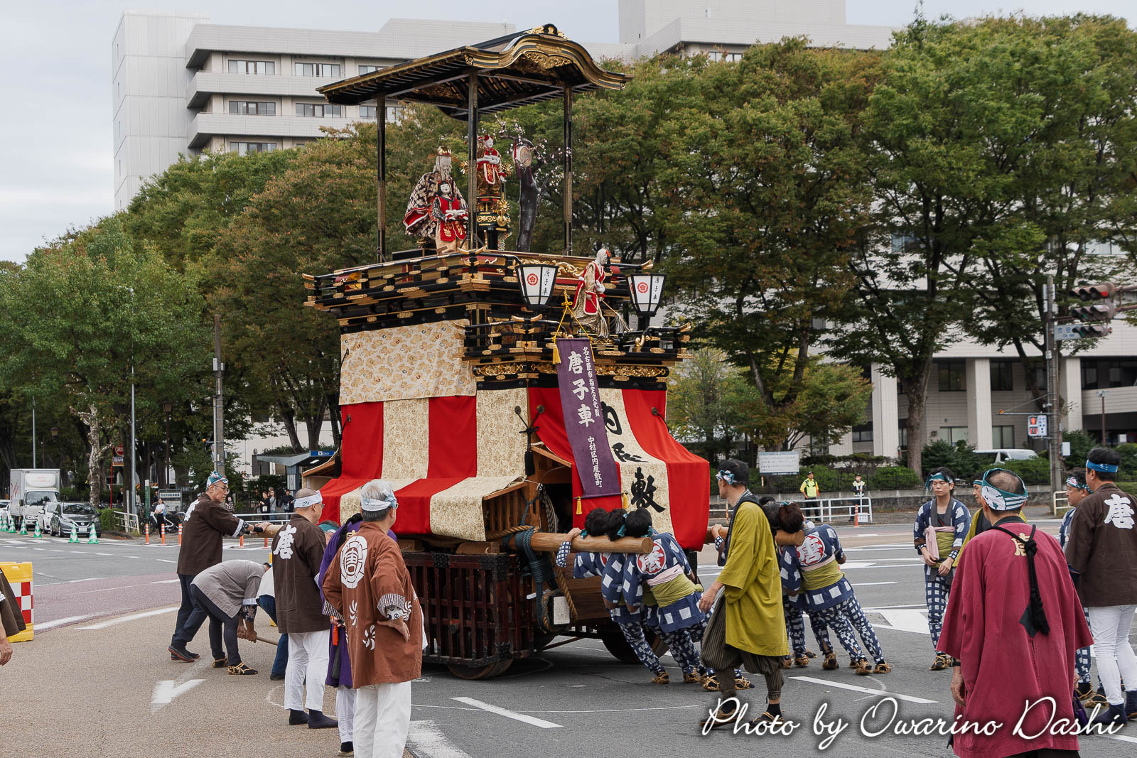 10:16 紅葉狩車が曳き出し、市役所に向かいます