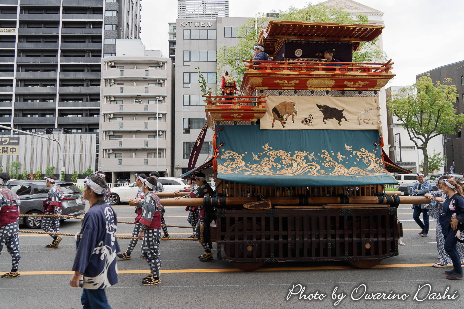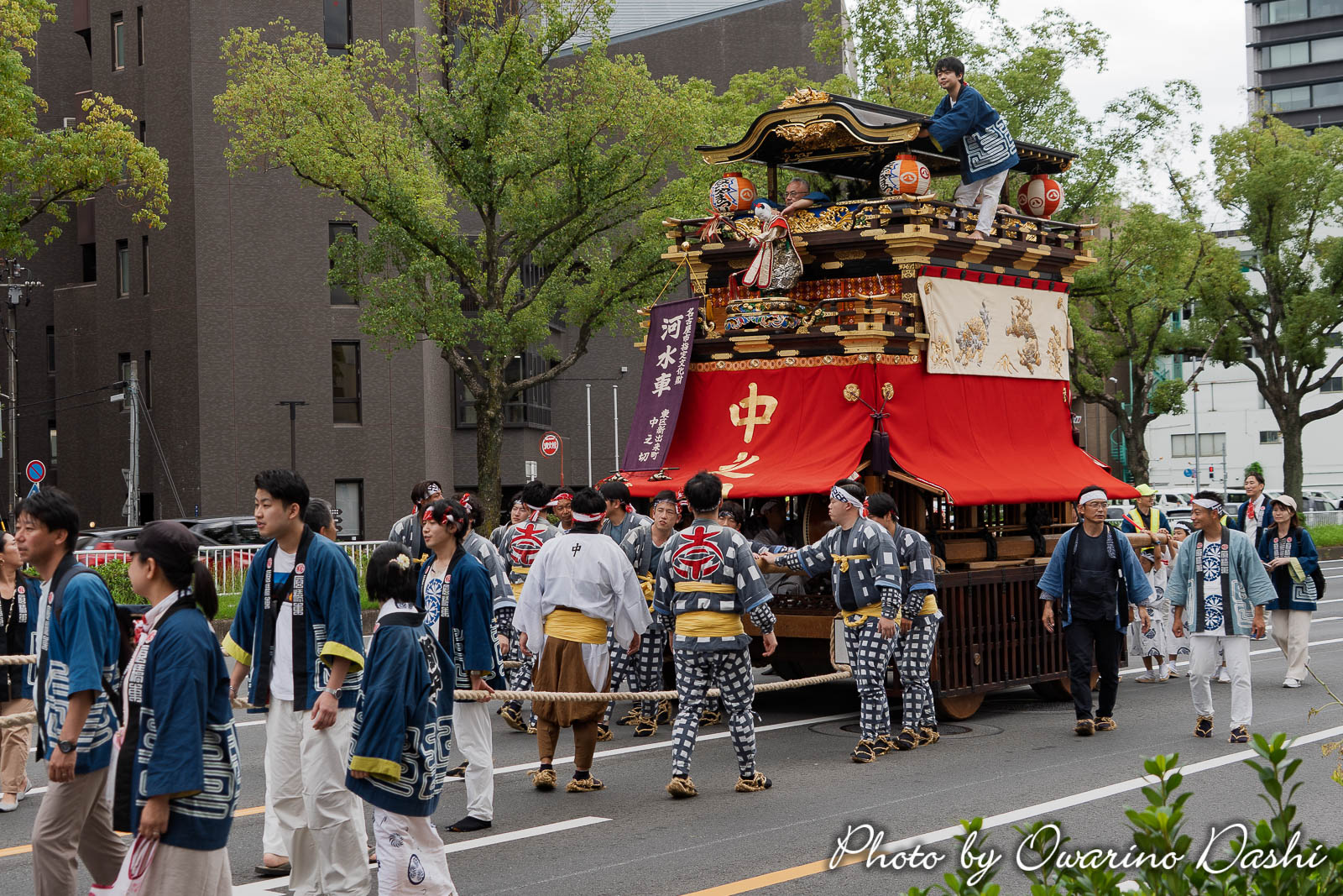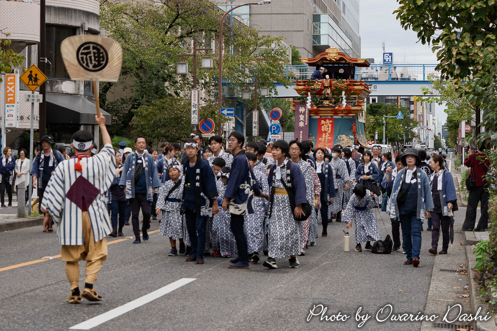 栄交差点で名古屋まつり山車揃終了後に東桜小学校北側で休憩した東区の山車5輌です。