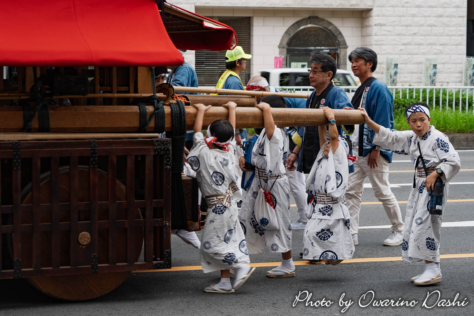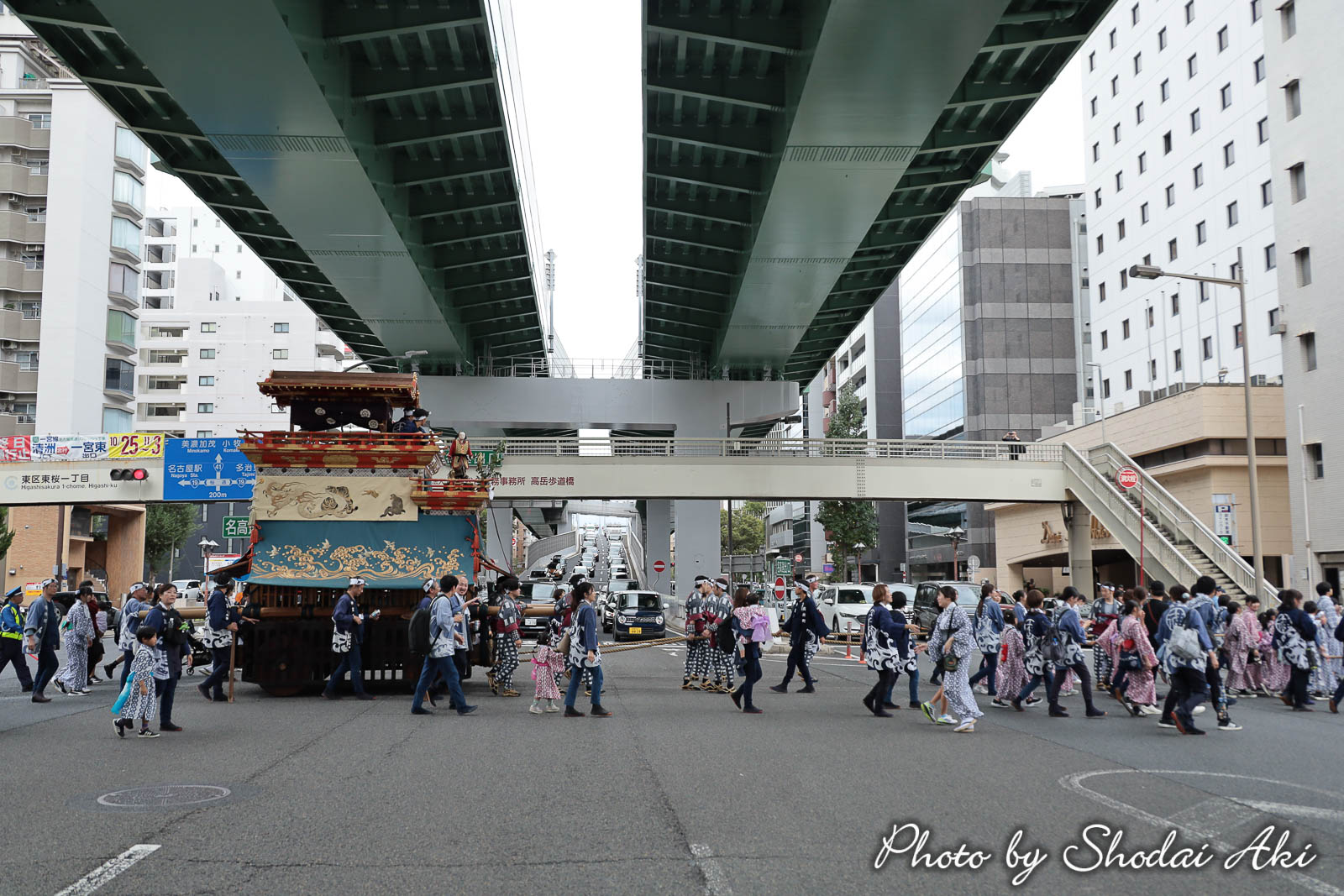 このあとなごやかまつり・ひがしの会場建中寺公園まで揃って曳かれます。
