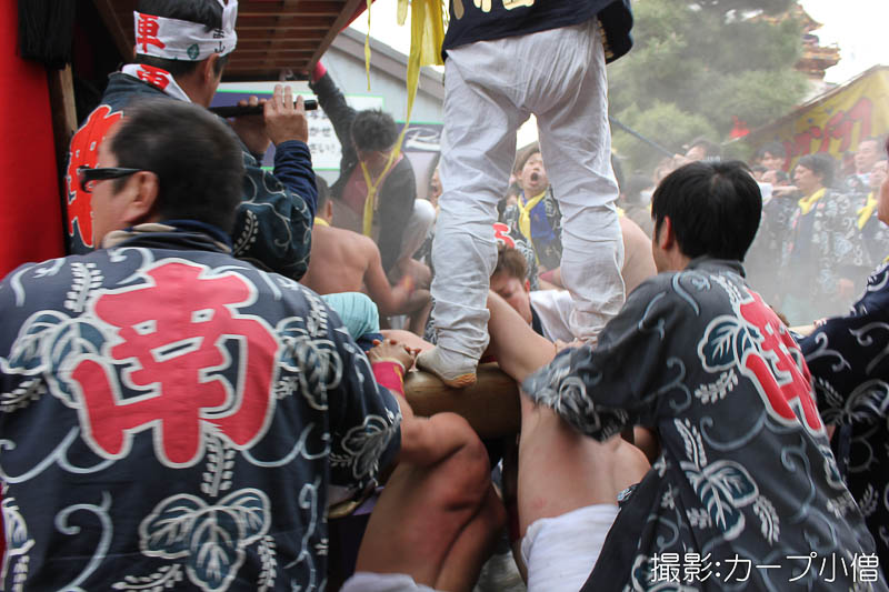 西山神楽車の坂下ろし