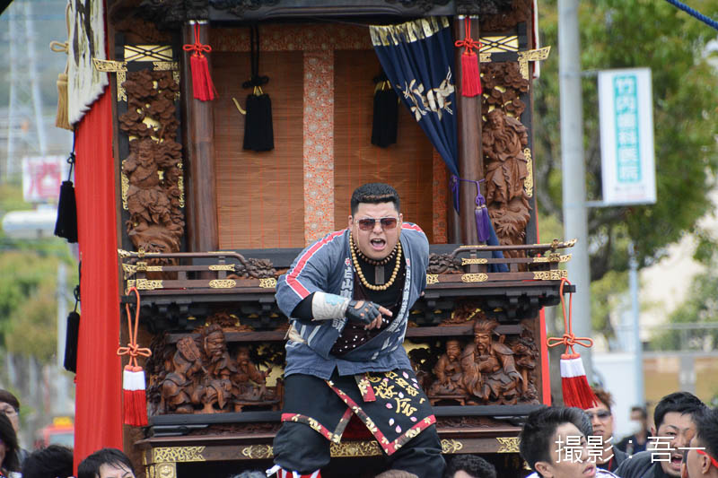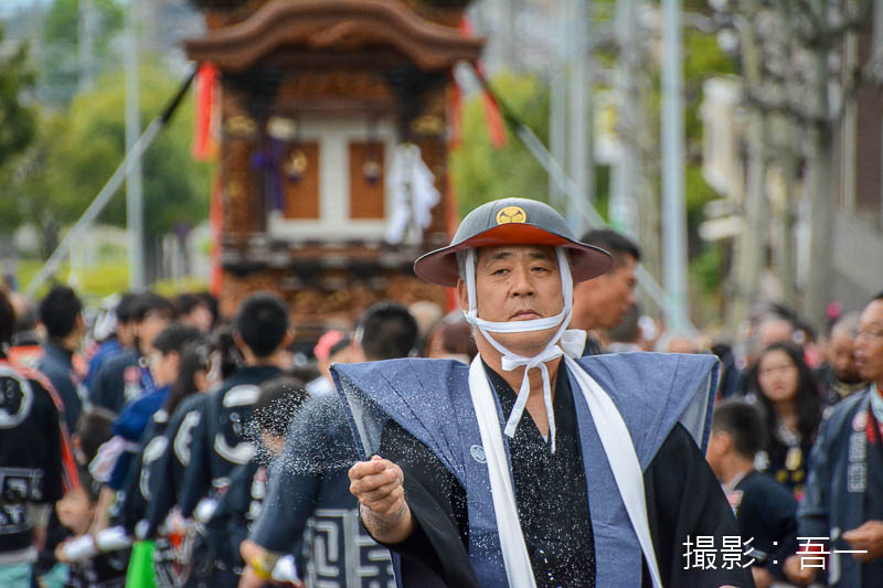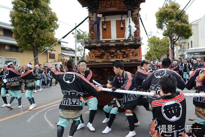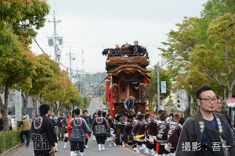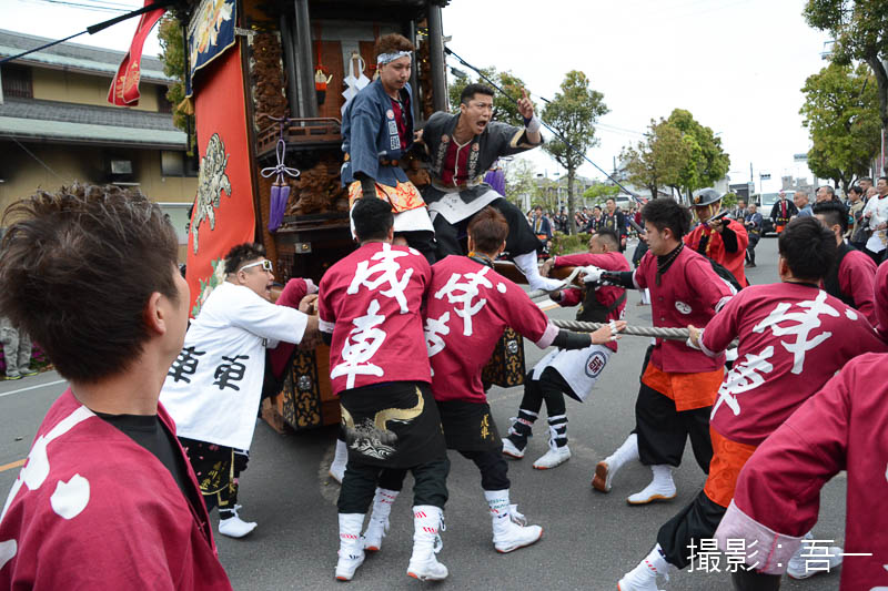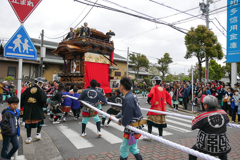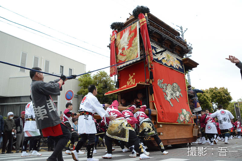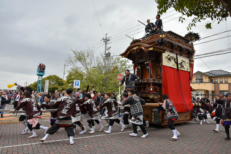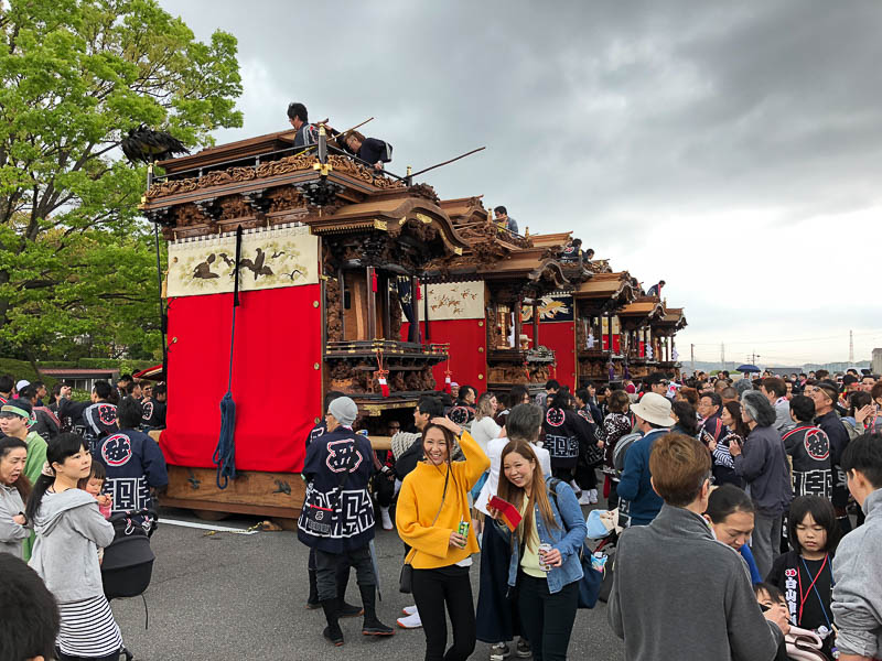 左から協和地区砂子組白山車、同西組協和車、成岩四区北村組成車、西成岩地区西組敬神車、同彦洲組日之出車