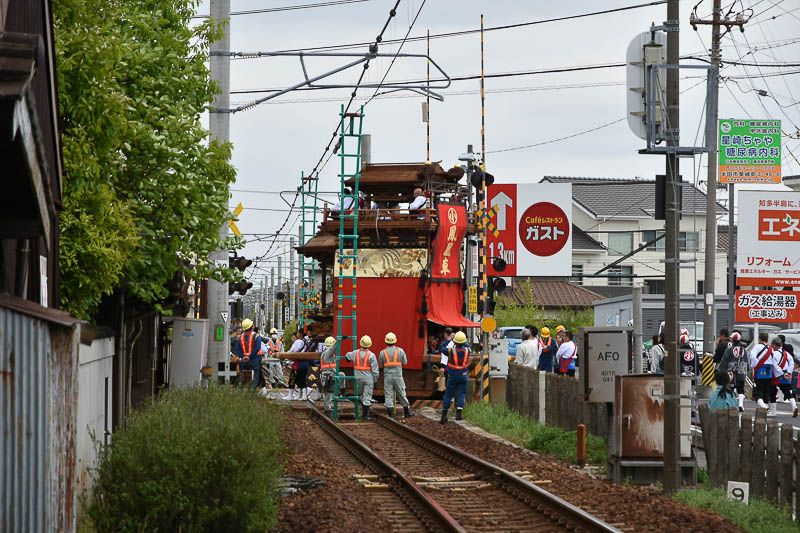 小迎鳳凰車がJR武豊線の踏切を渡ります