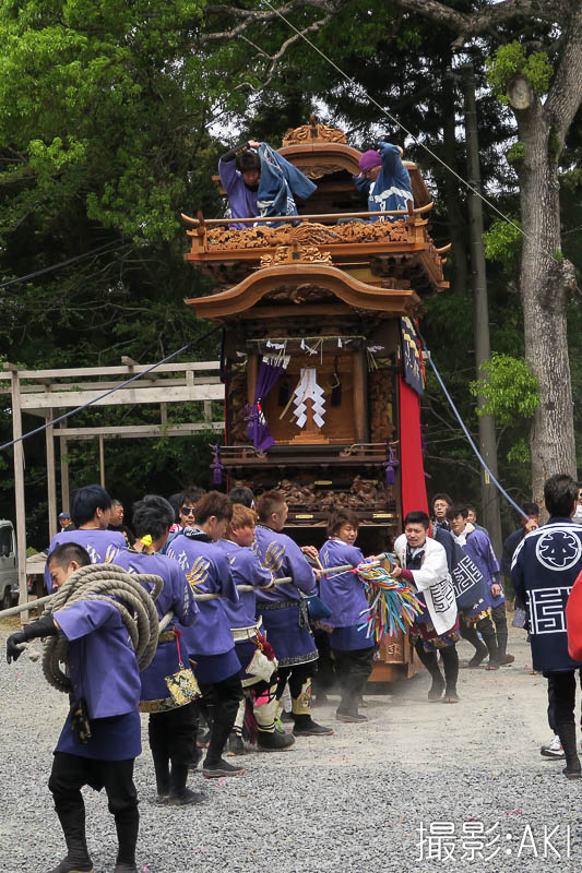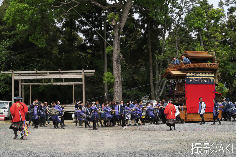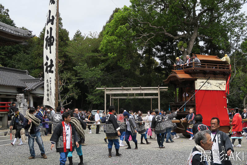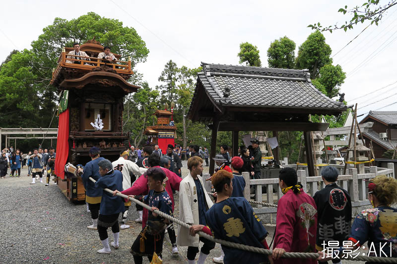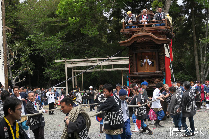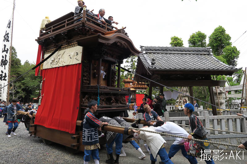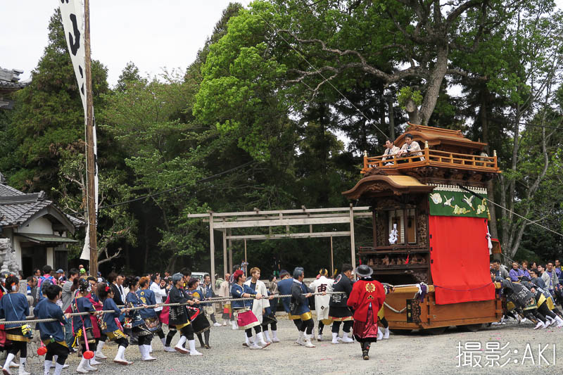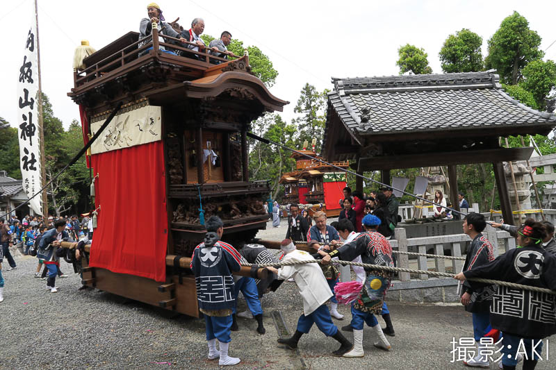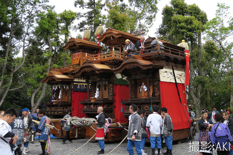 板山神社境内の本板山組、本子車、小板組旭車、大湯組花王車です