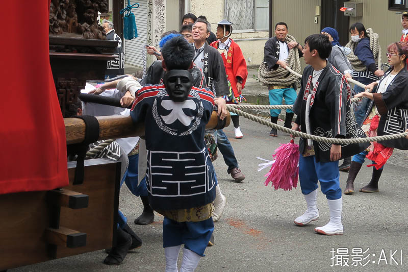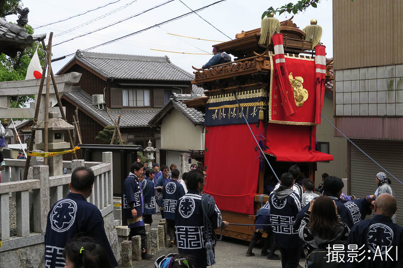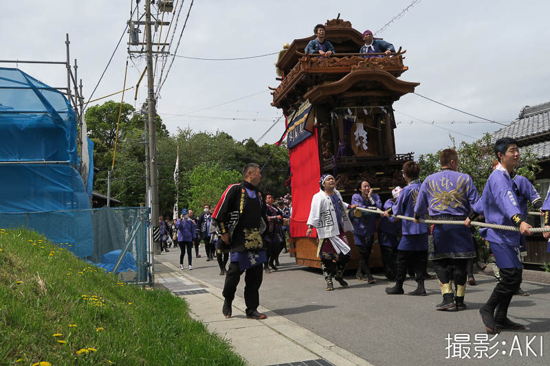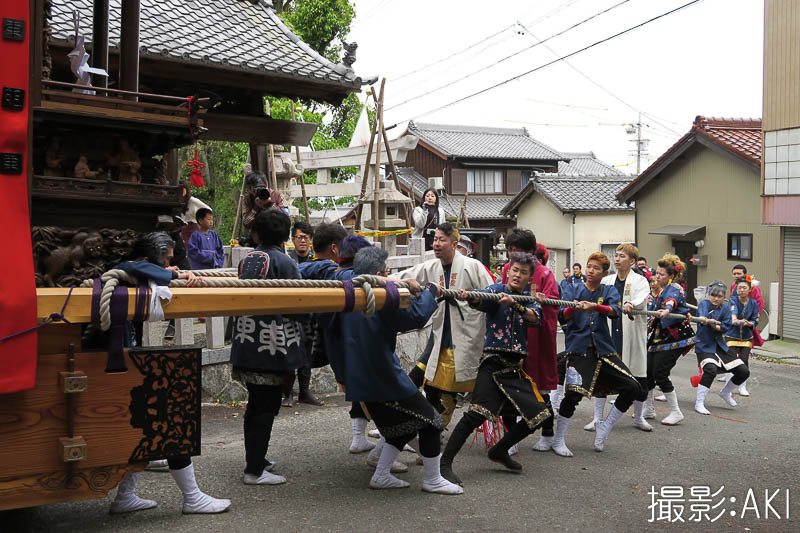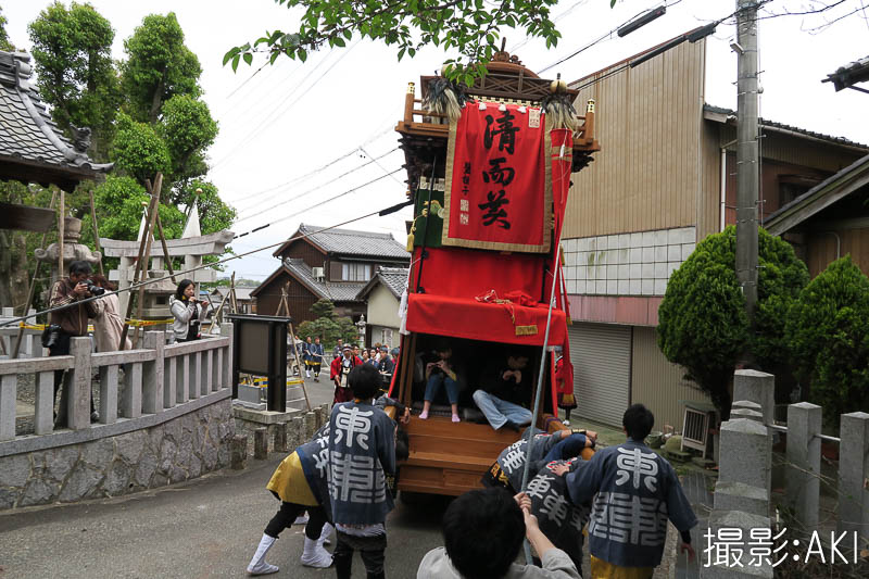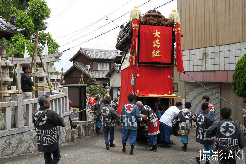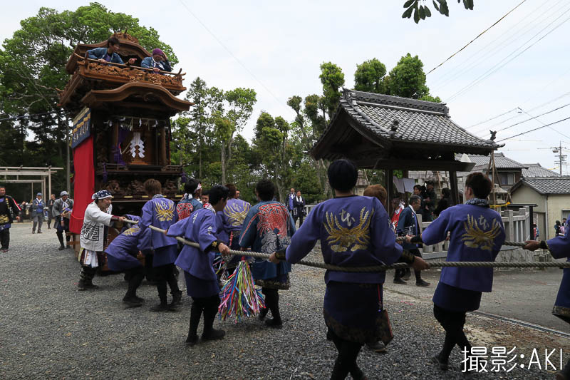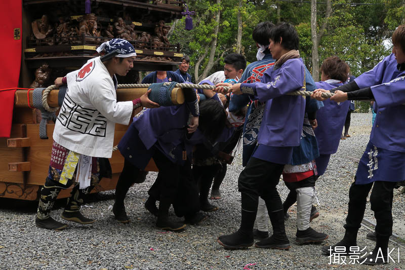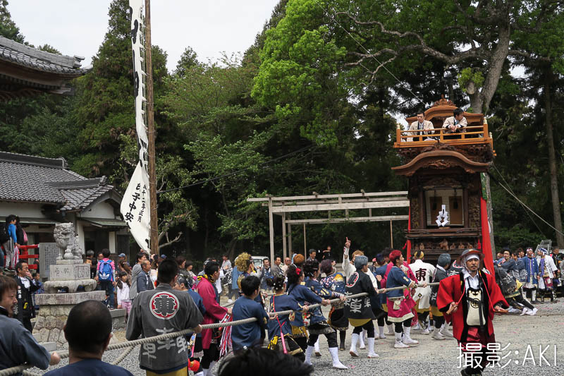 板山神社境内の本板山組、本子車、小板組旭車、大湯組花王車です