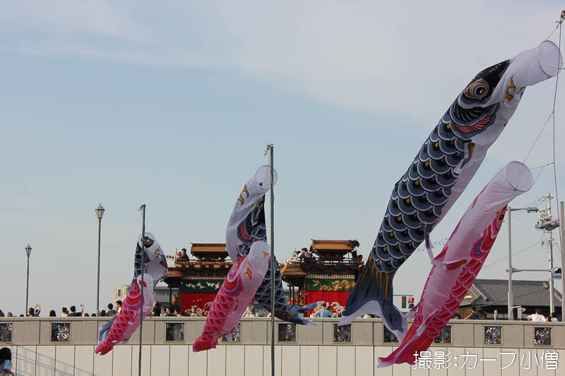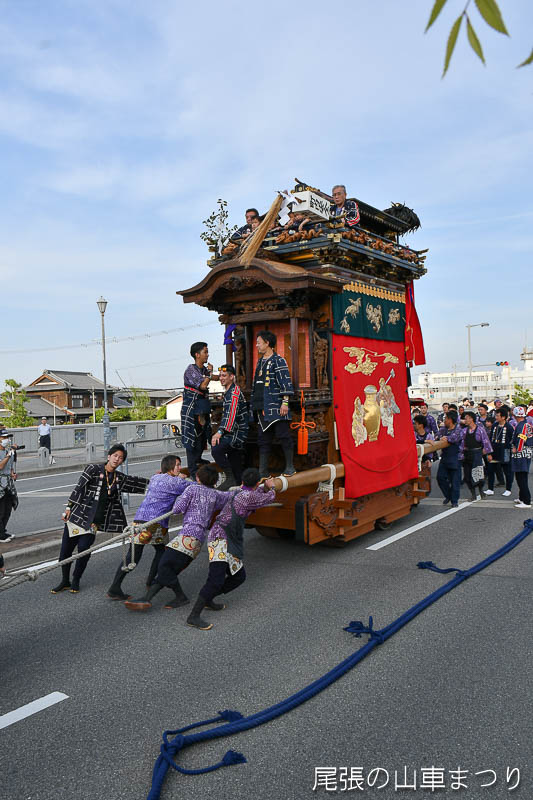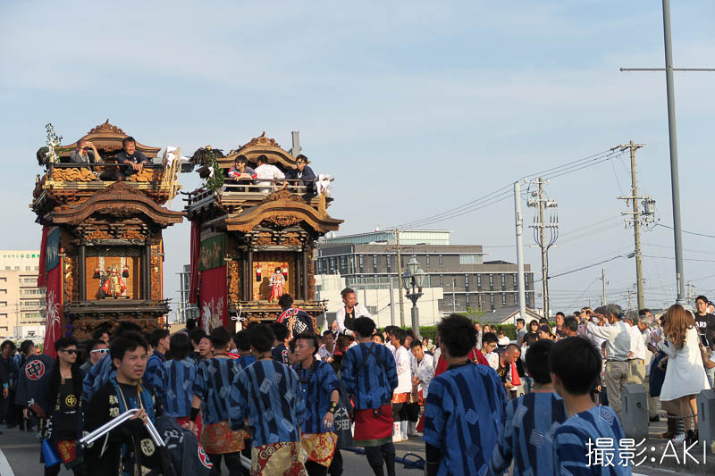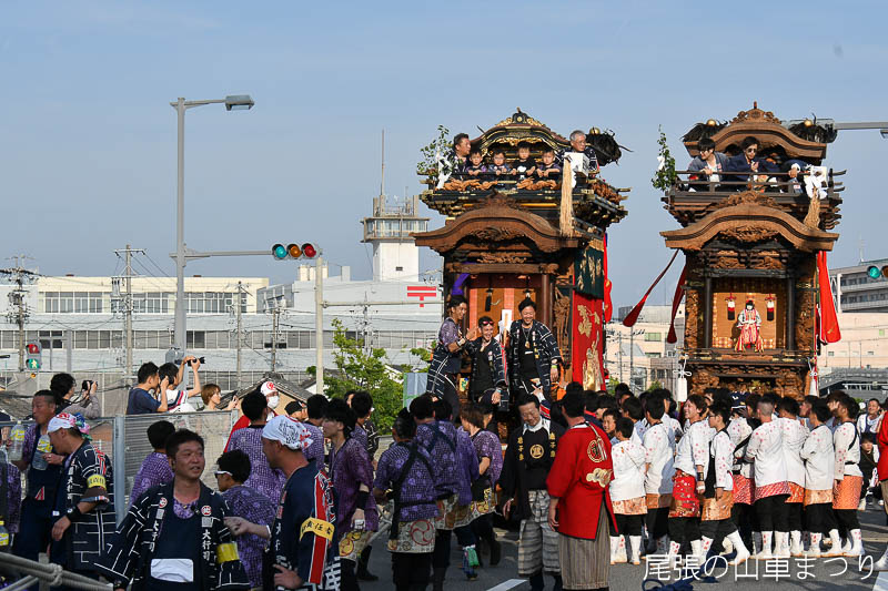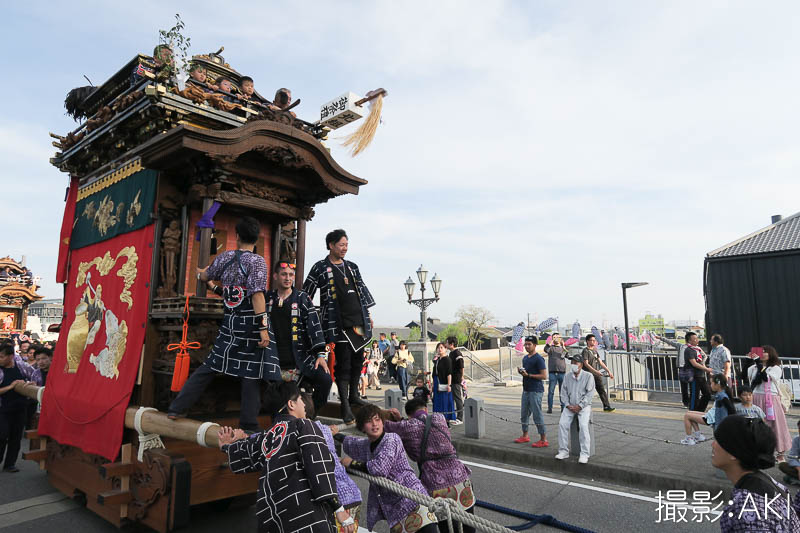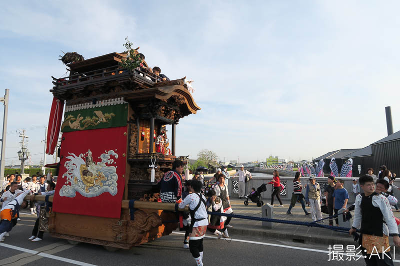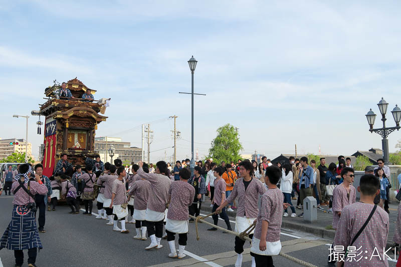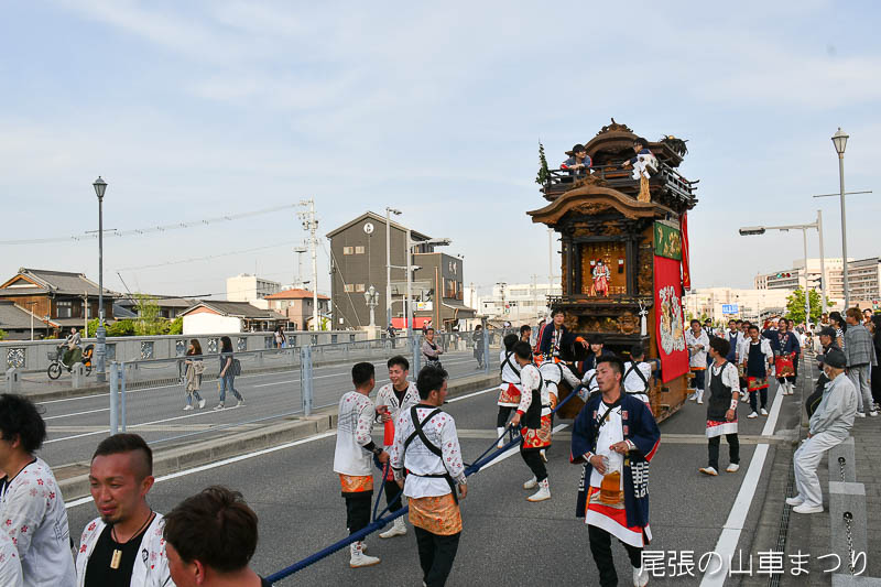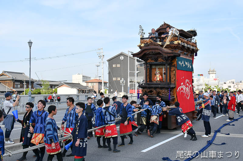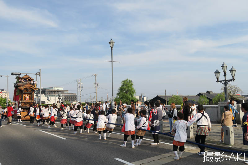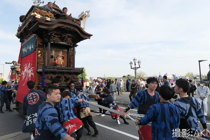 源平橋の上で北組唐子車が先行します