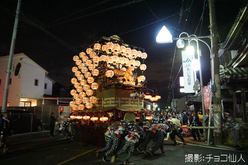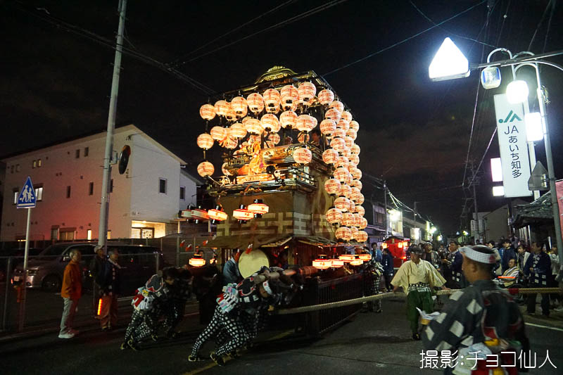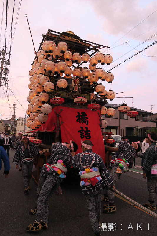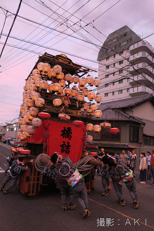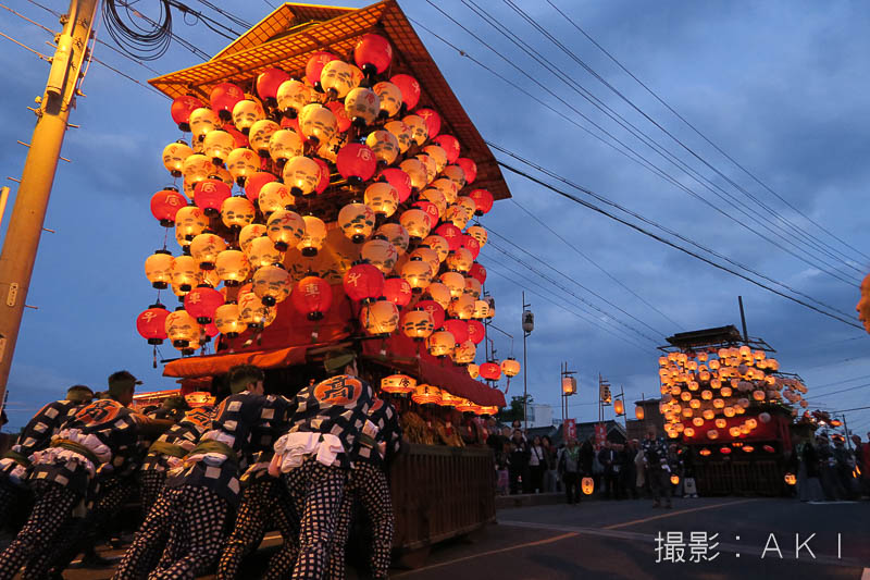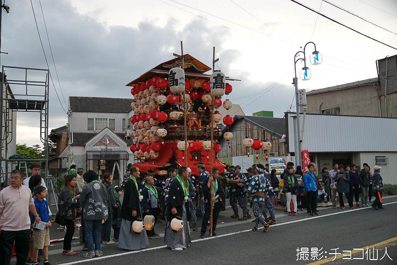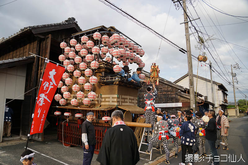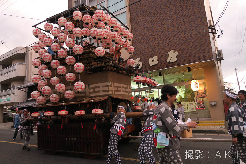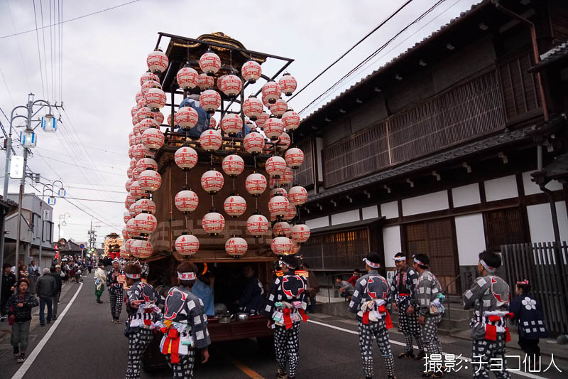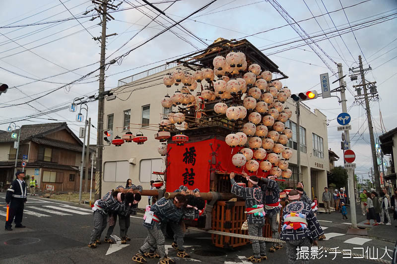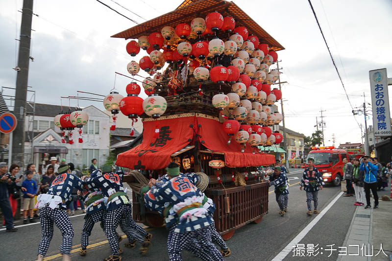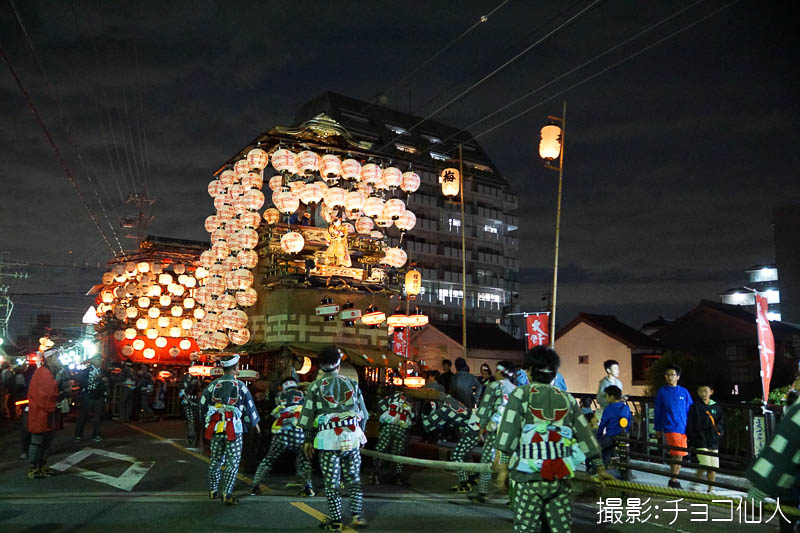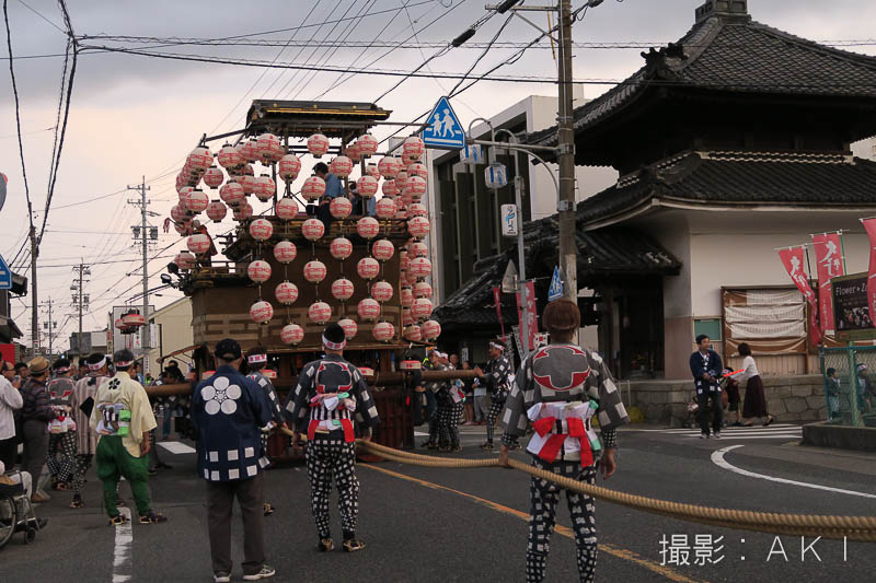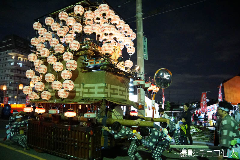 大野町駅前の橋詰町紅葉車が曳き出しです