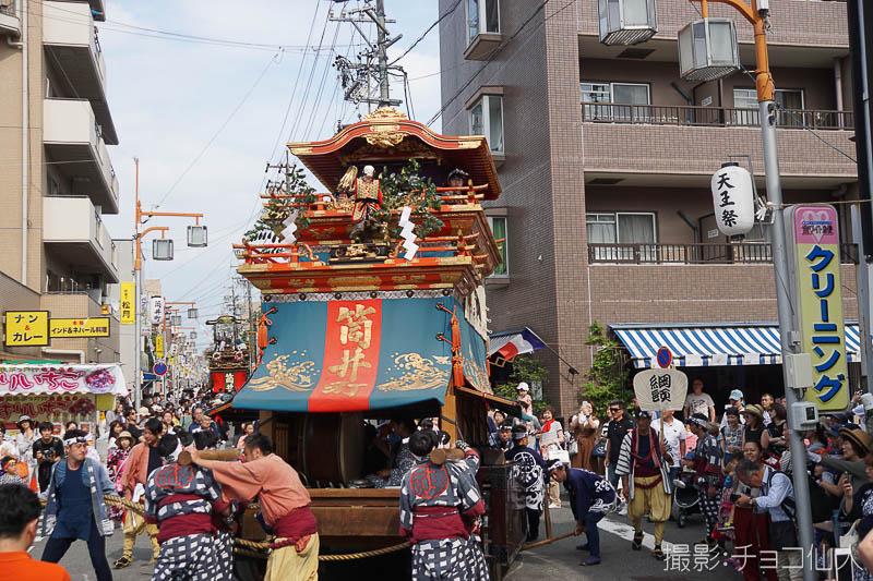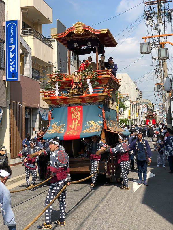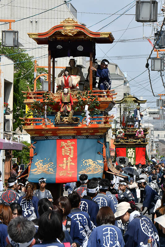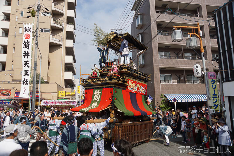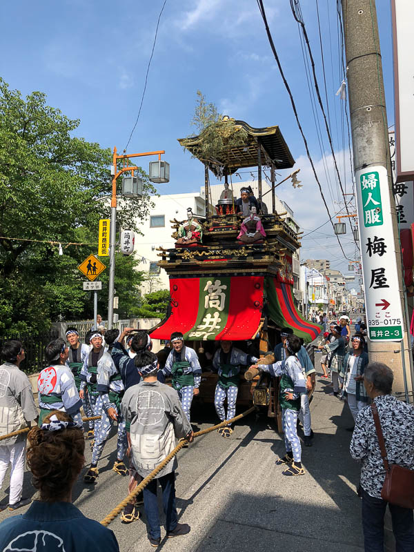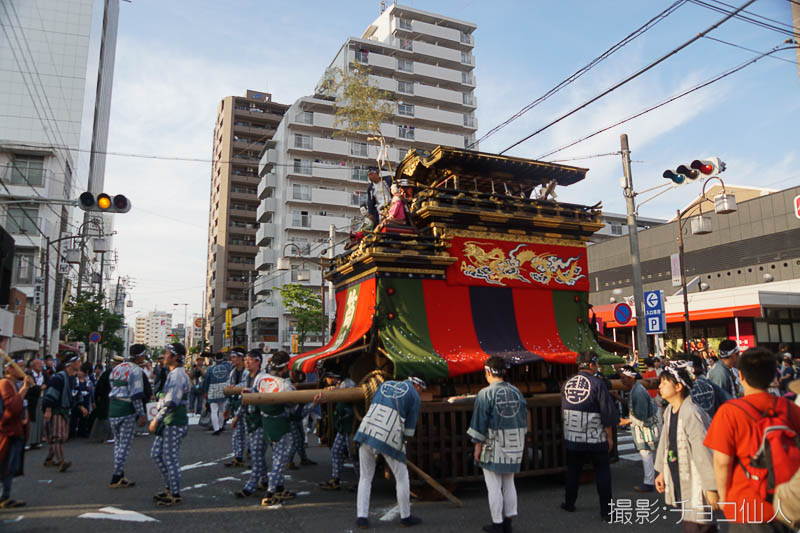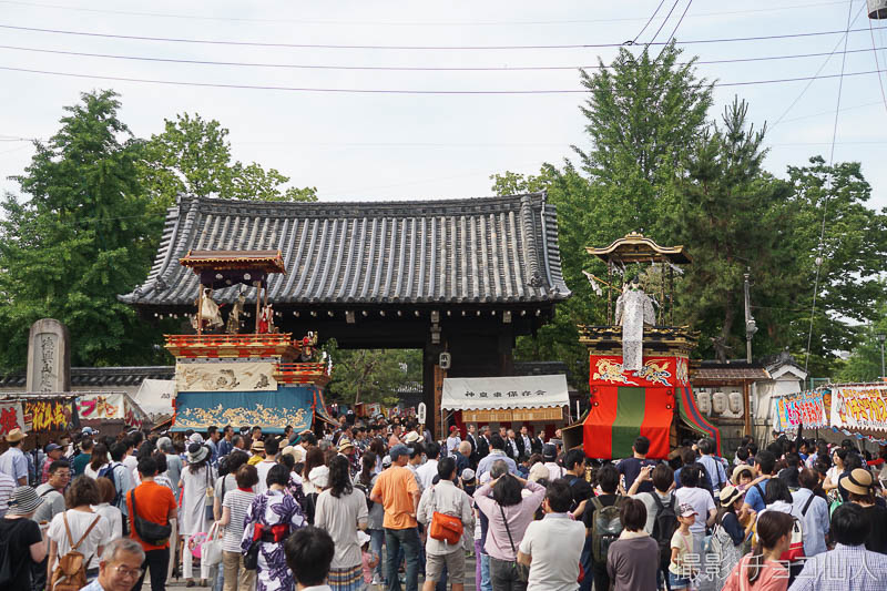 湯取車が建中寺総門前の天王社にからくり人形の奉納