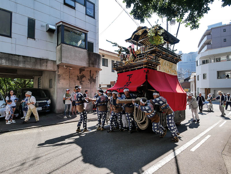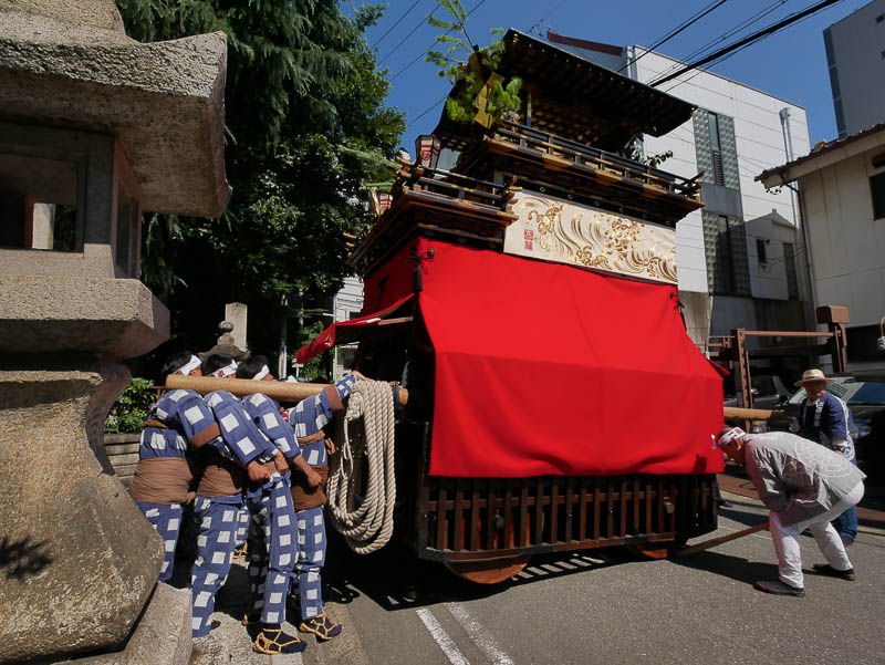 江戸時代には近隣の町から十数輌の見舞車が曳き出され、大変賑やかだったと伝えられる三之丸天王祭ですが、昨年に続きゆかり見舞車である二福神車が曳き出されました.