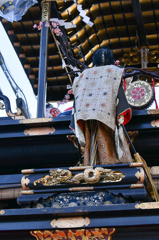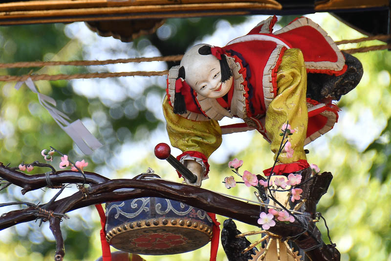 唐子は涼しい顔で梅の木に乗って太鼓を打ちます