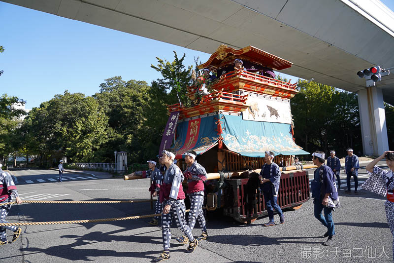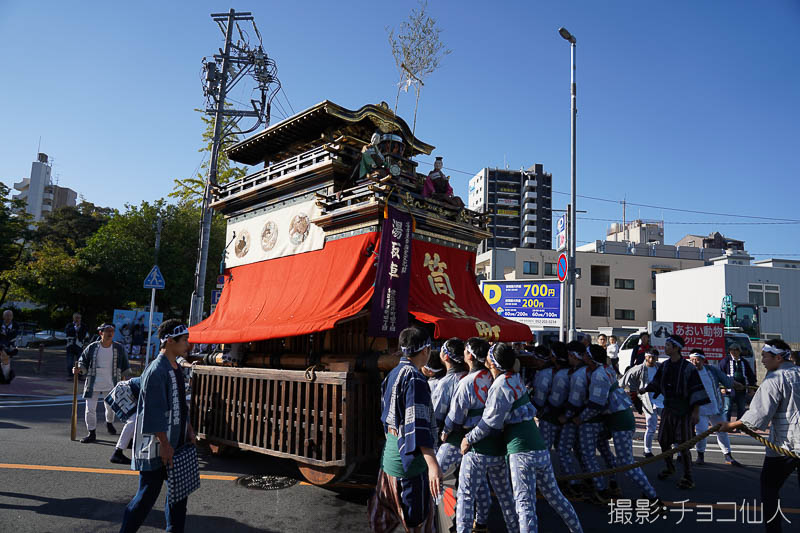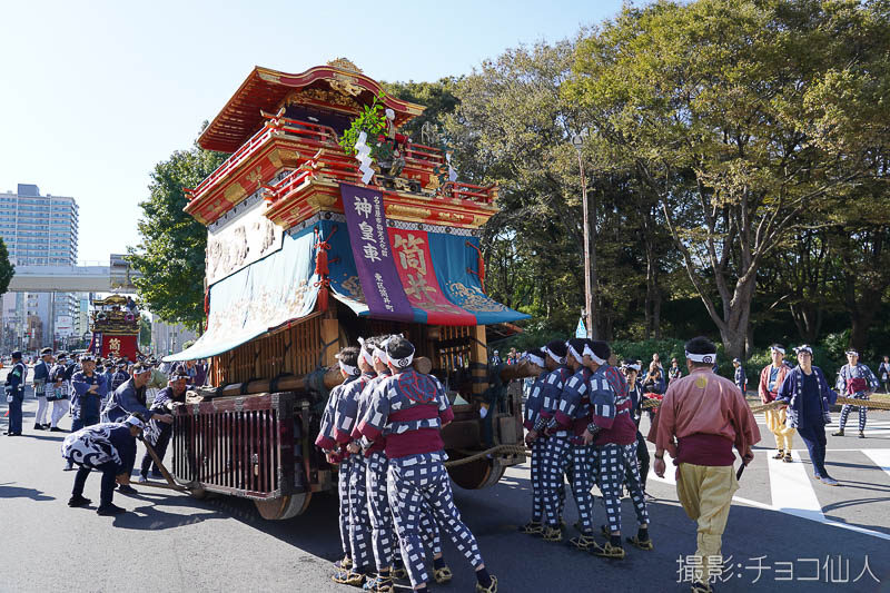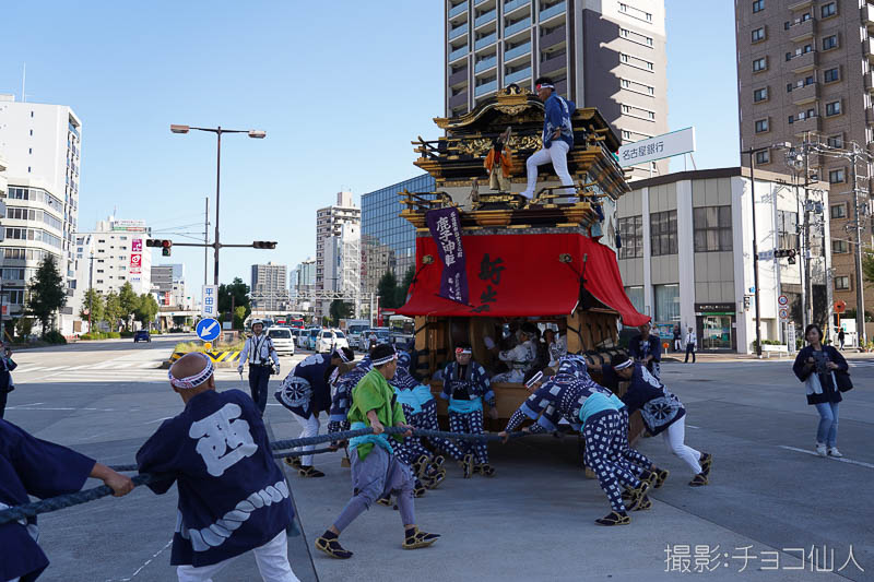 東区5輛の山車が揃い神皇車を先頭に外堀通を西に向かいます