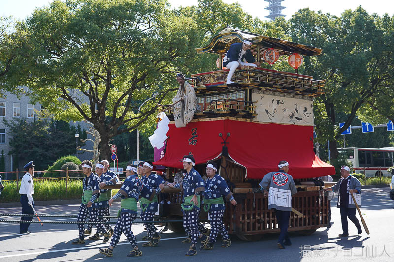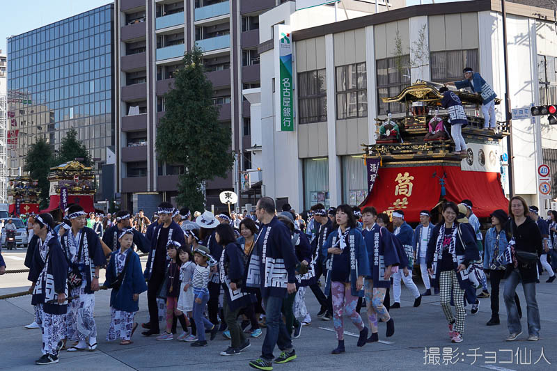 神皇車を先頭に名古屋まつり山車揃え会場の市役所に向かいます