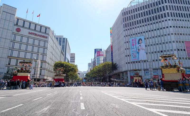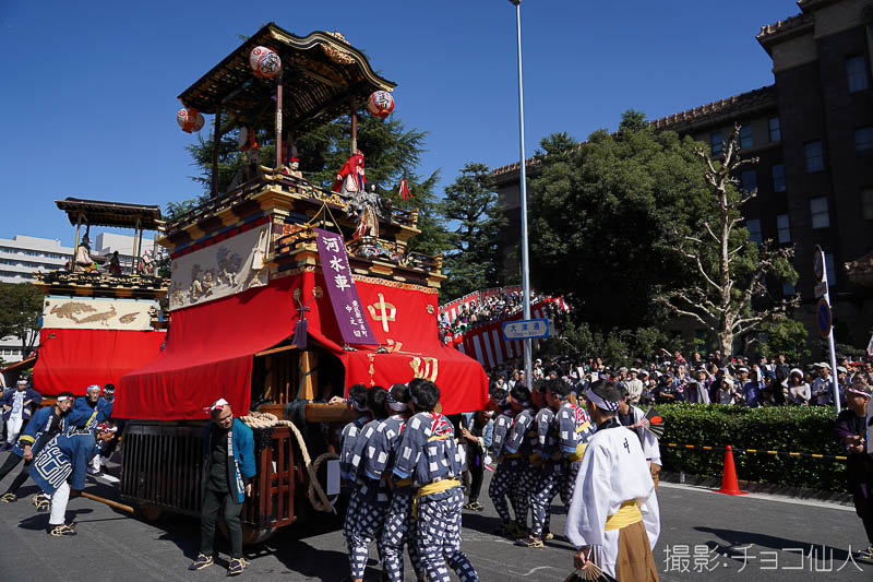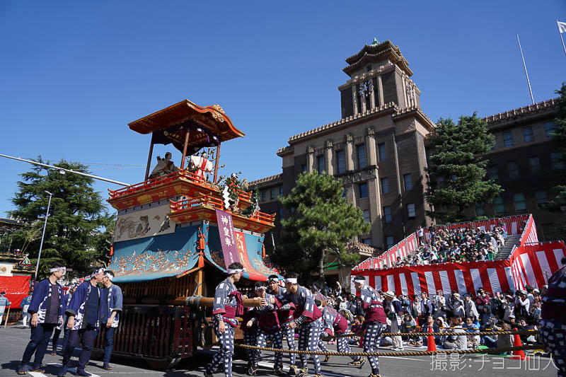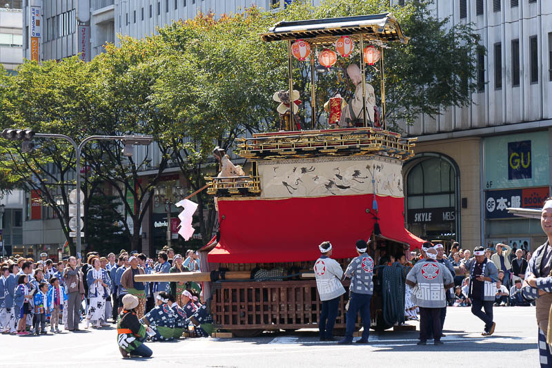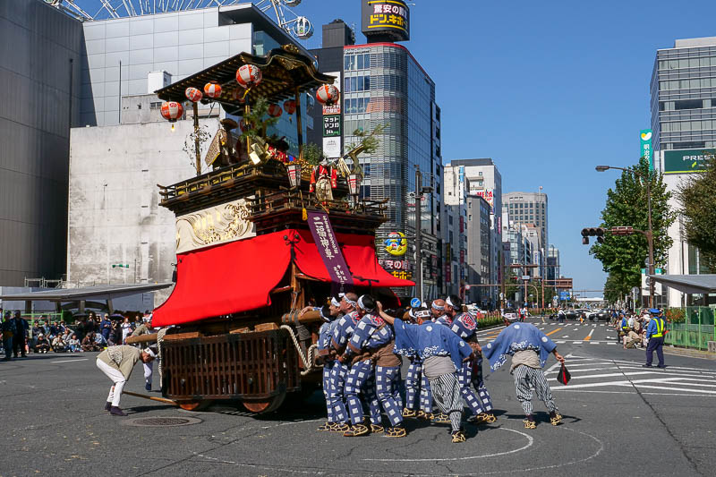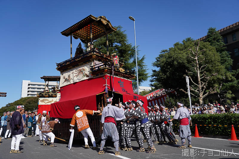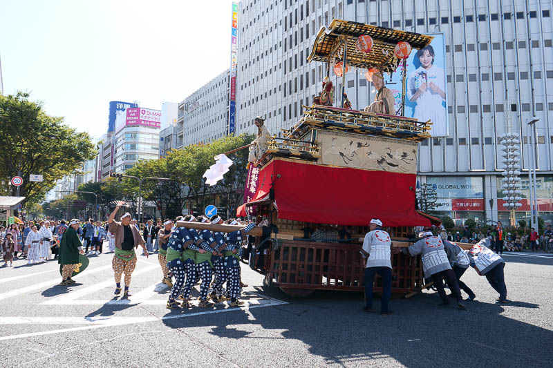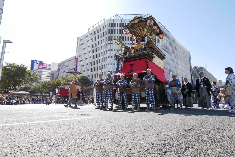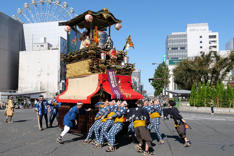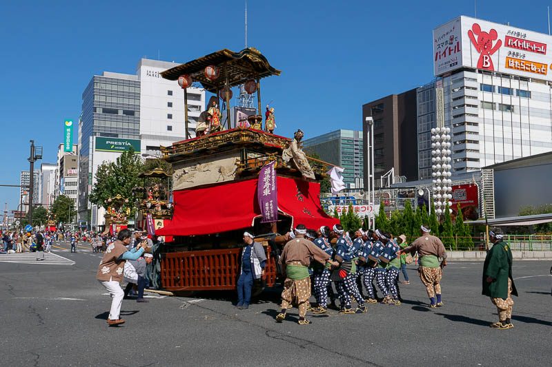 福禄寿車から二福神車までの4輛が栄に曳き出された後、東区の山車5輛は順次からくり人形を披露してから栄に向かいます