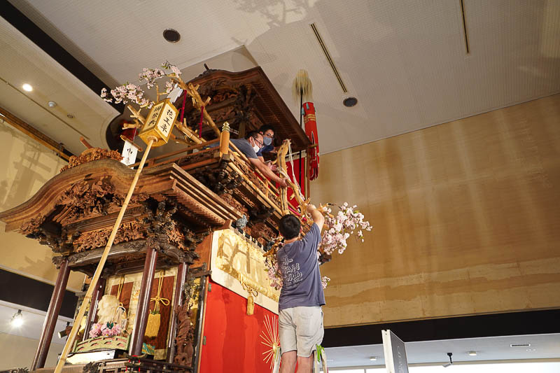 当初の展示では前棚人形が神官でしたので初の日の花王車であり、さらに上山が下がり吹き貫が立っていますので、『初の日の曳き下ろし』をあらわしていたことになります。