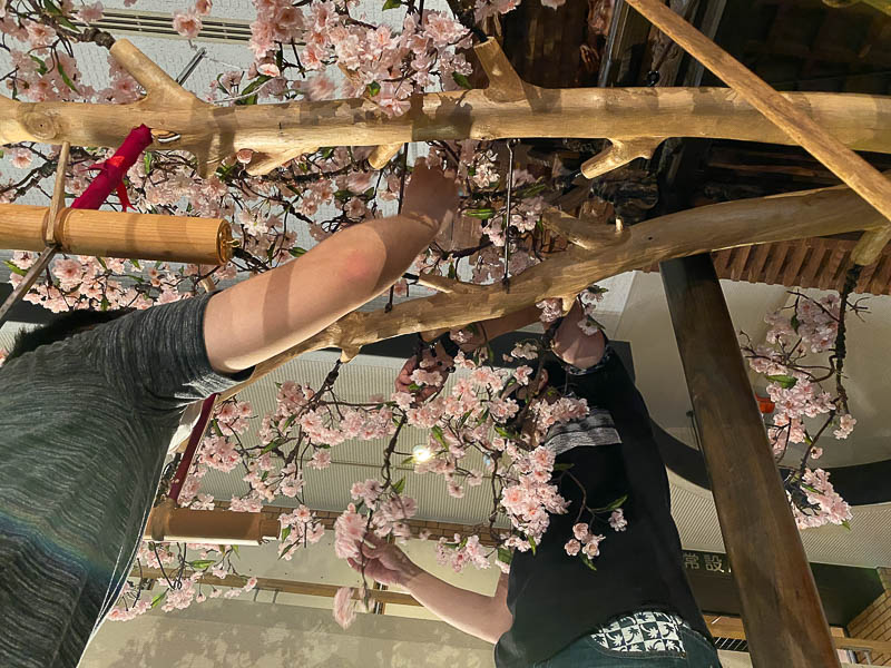 さらに上山を上げ桜木に枝と綾を取り付けて唐子人形の綾渡り『桜花唐子遊び』をする姿を再現しています。