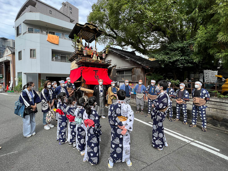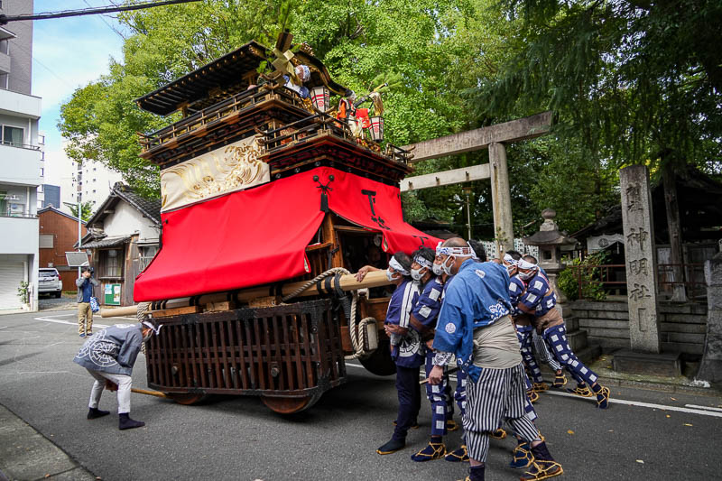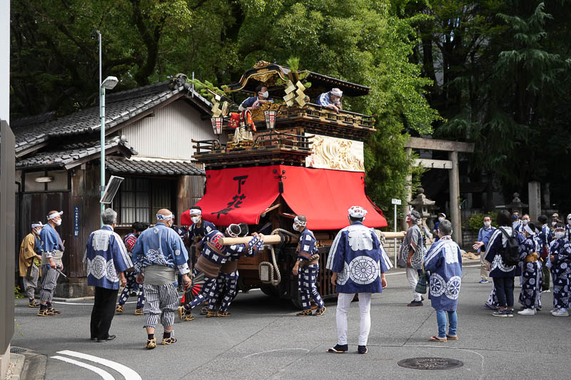 例年は紅葉狩車、二福神車、唐子車が曳き出されますが、新型コロナ感染対策から今年は3輌が揃うことなく、各車自由曳きとなりました。