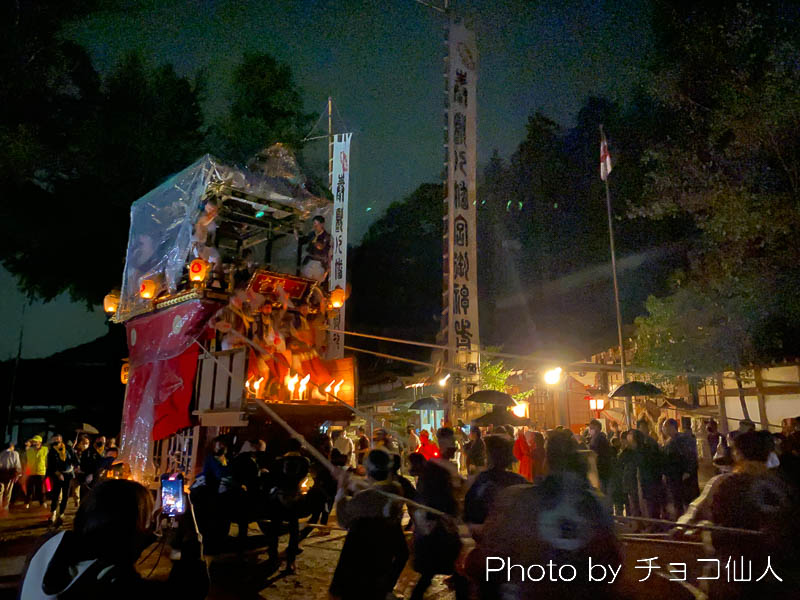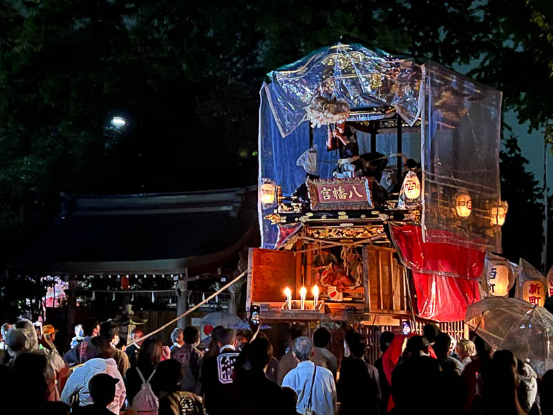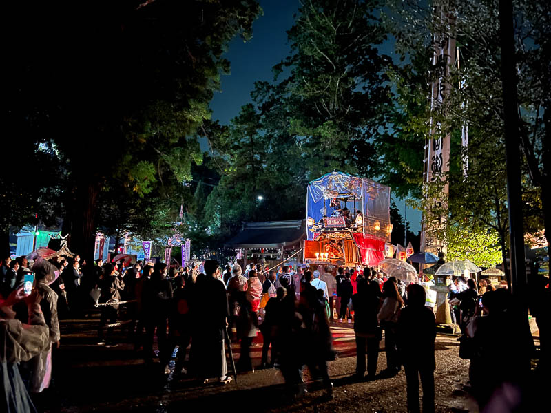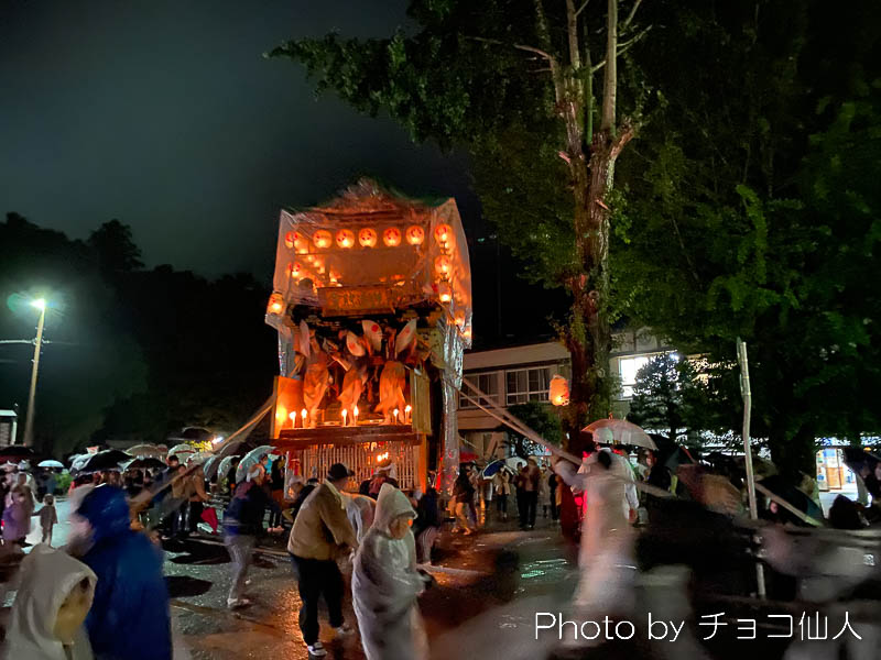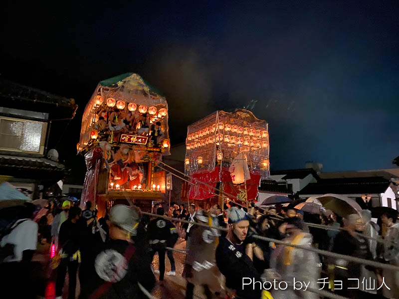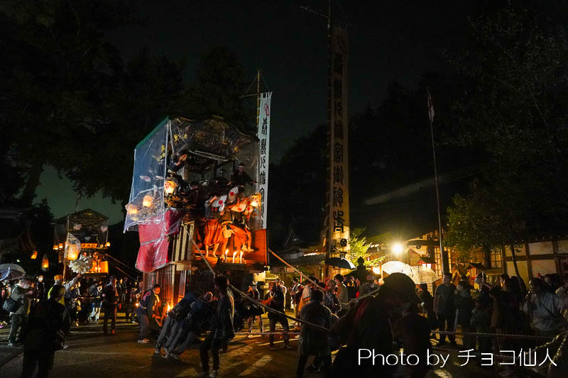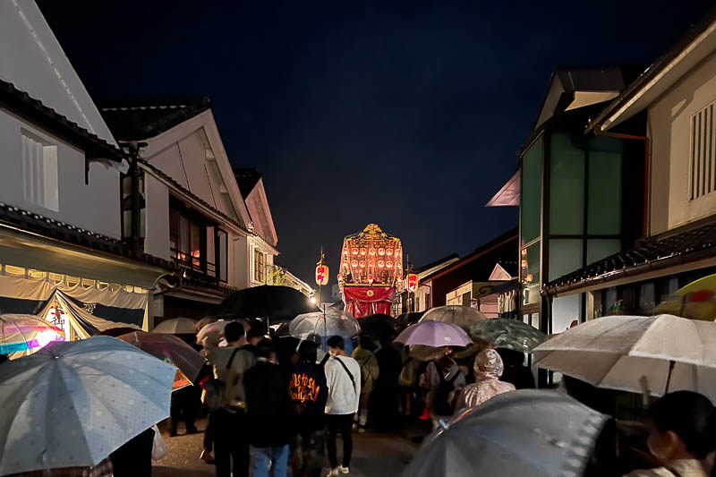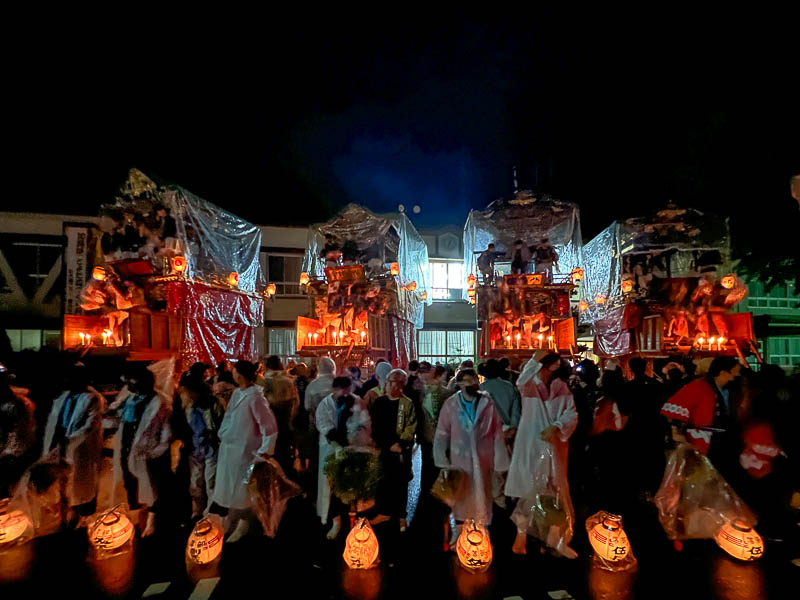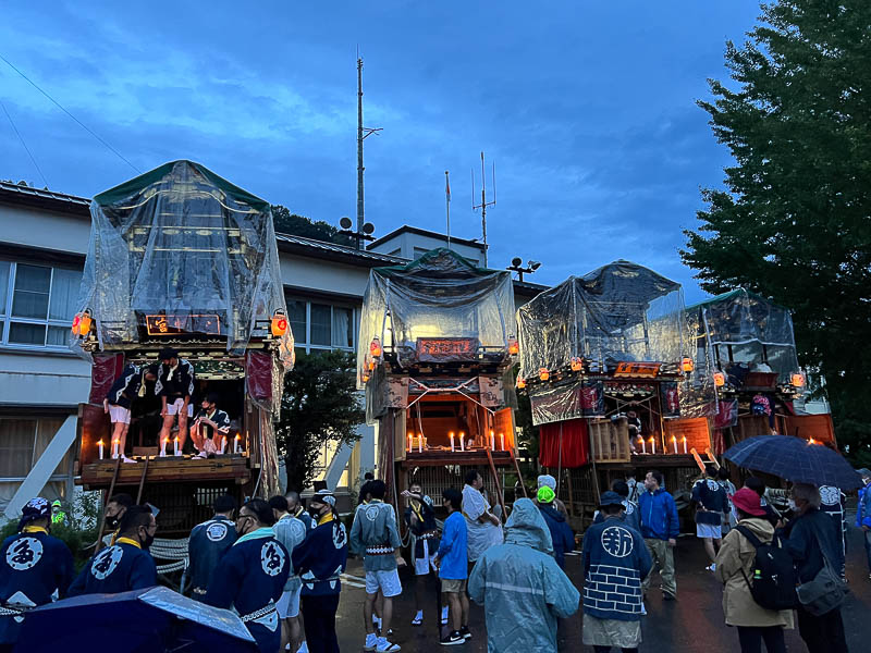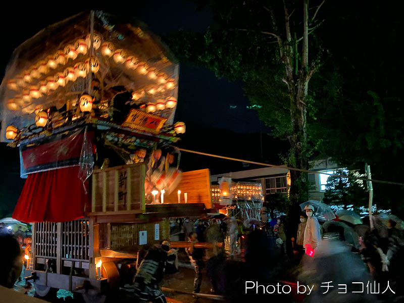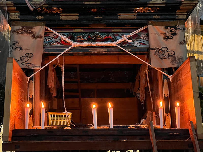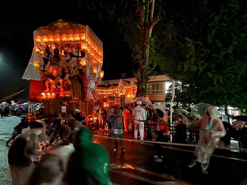 朝から生憎の雨で行われるか半信半疑で足助入りしましたが、小雨が止まない空の下4輌の山車が提灯と和蝋燭でお出迎え
