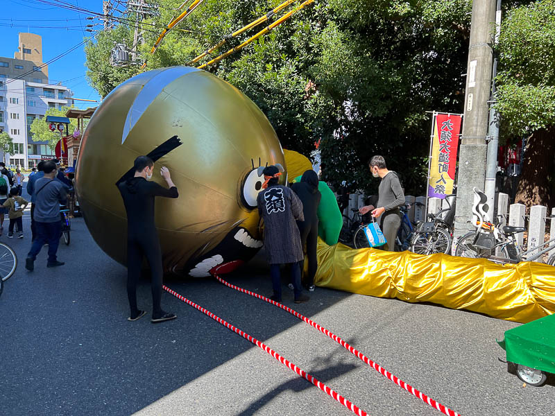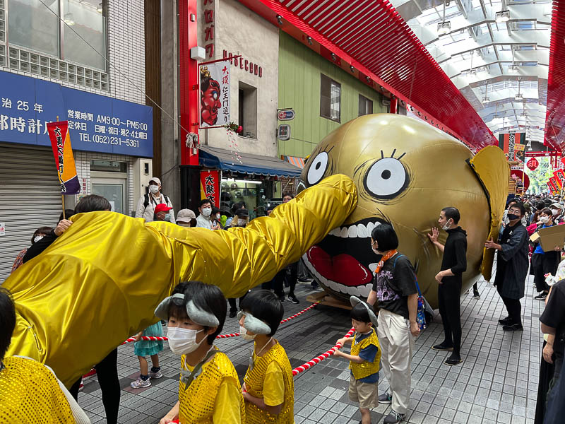祭礼ではなくイベントですが、大須の大道町人祭りの「大須ごった煮パレード」に梵天車と月見坂山門車などが登場大須界隈をパレードしました
