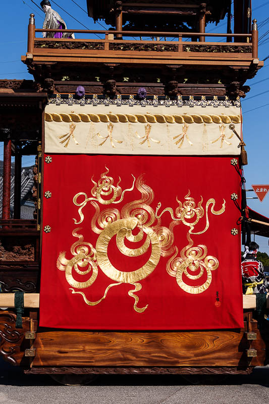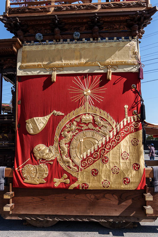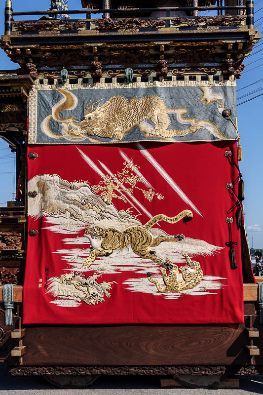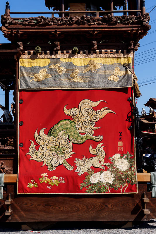 大幕「猩々緋に牡丹に唐獅子の刺繍」