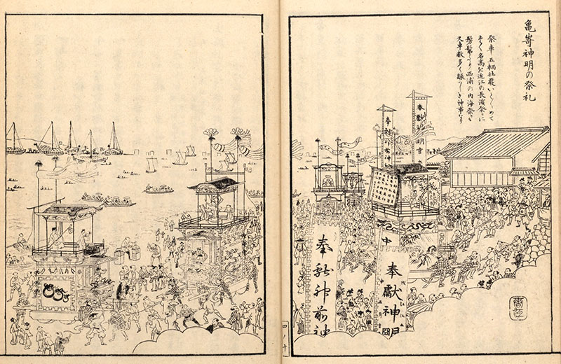 『尾張名所図会附録ー小治田之真清水(おわりだのましみず)巻四』で描かれている「亀嵜神明の祭礼」です