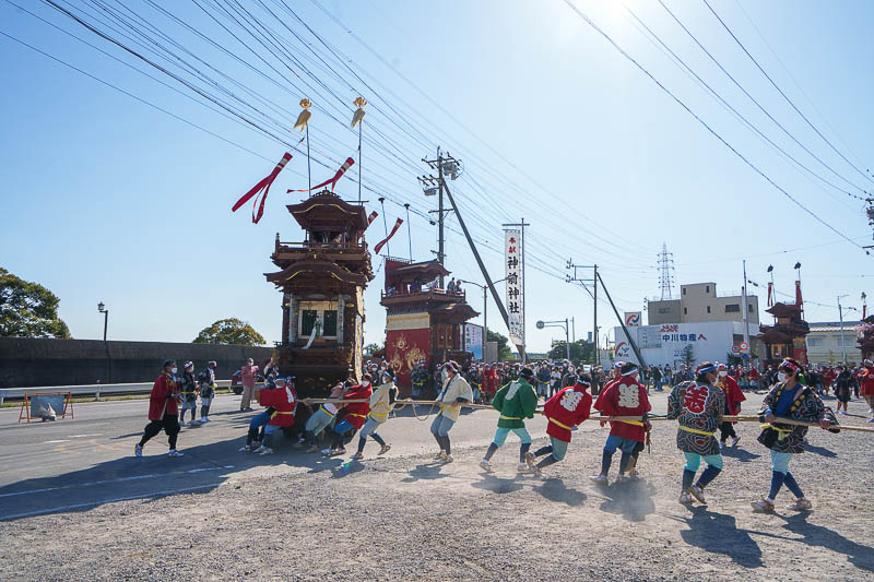 この絵図を再現するため山車を配列しドローンにて撮影するという企画だそうです