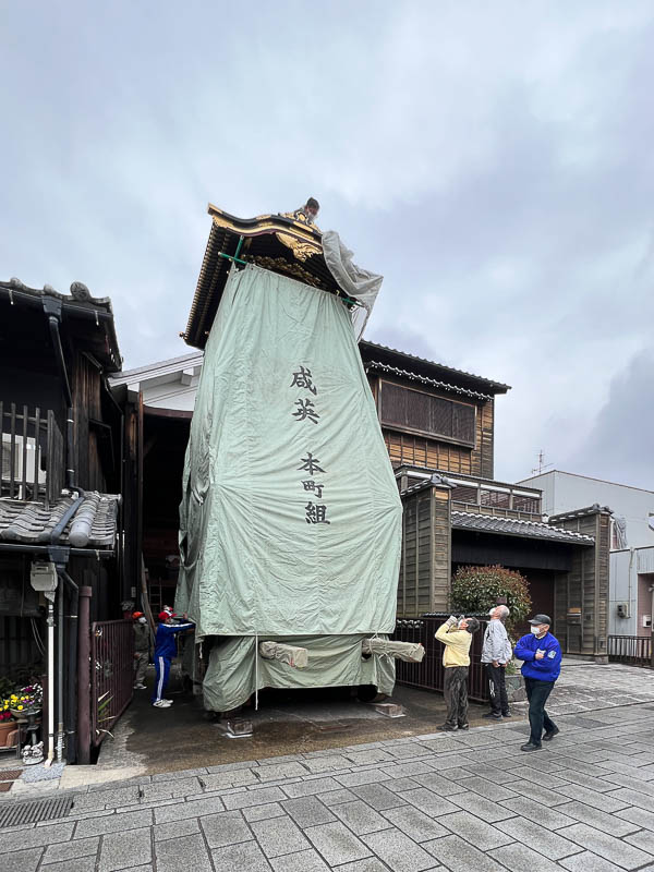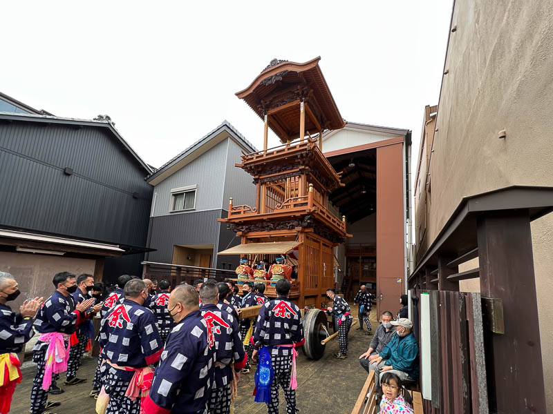 雨天のため予定されていた車山の巡行は残念ながら中止となりましたが、一部の町内では車山蔵にてからくり人形演技が行われました。