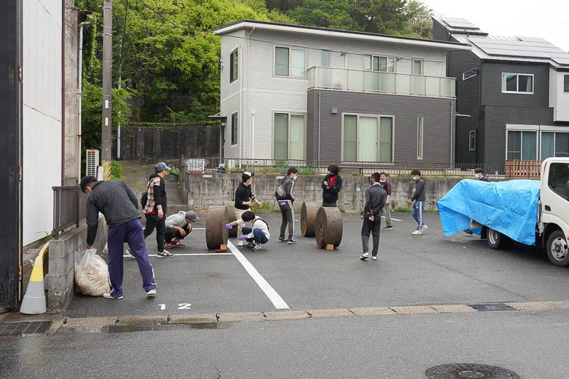 雨が上がって中切組が外で再開