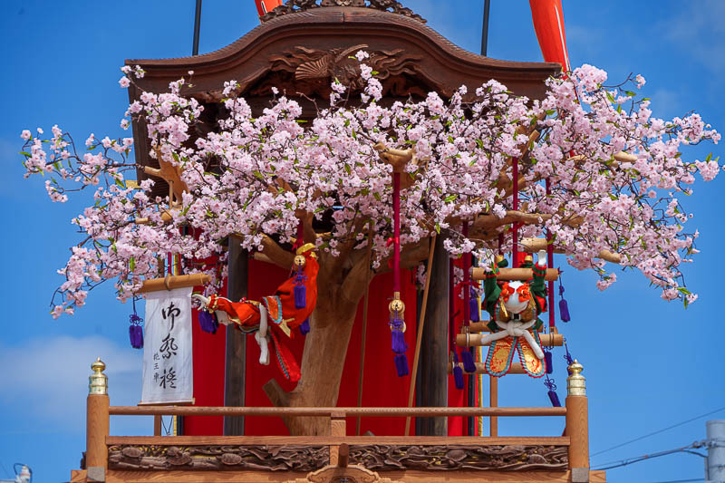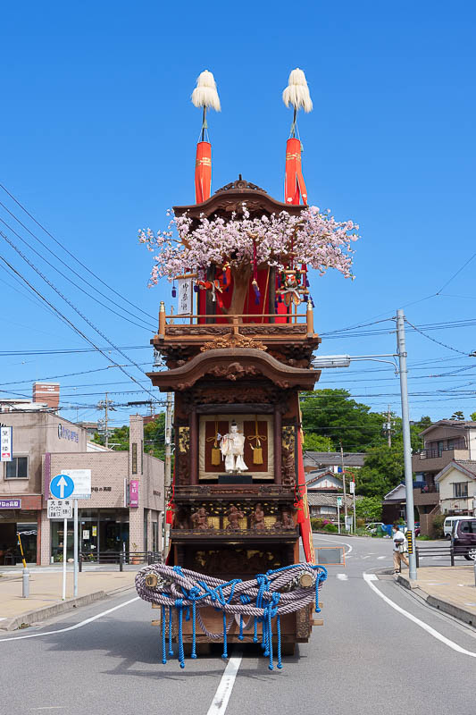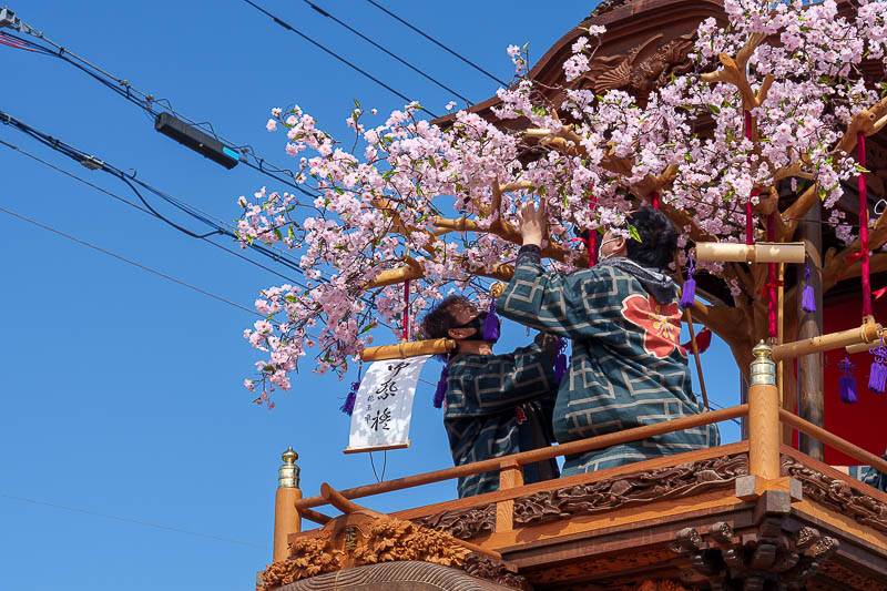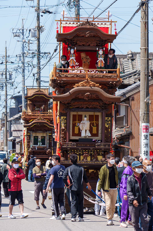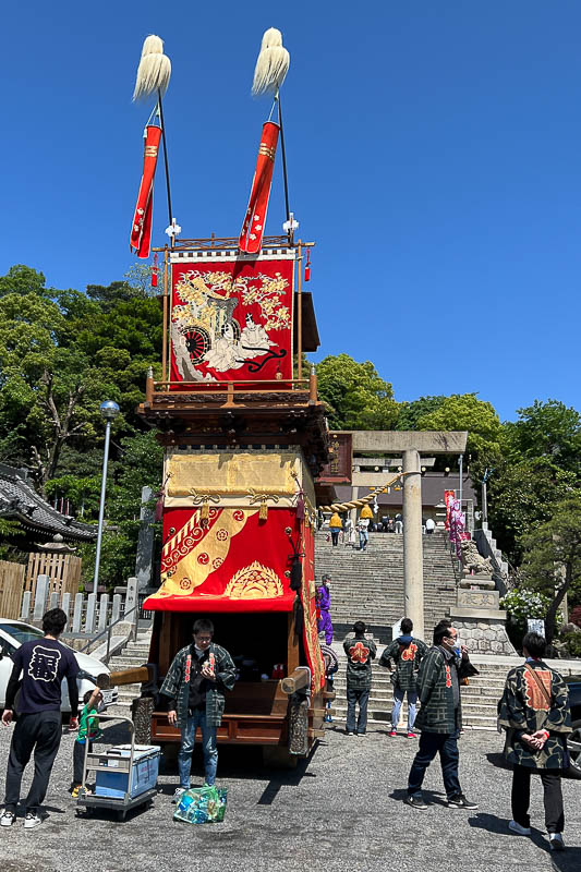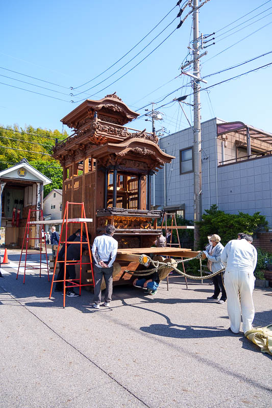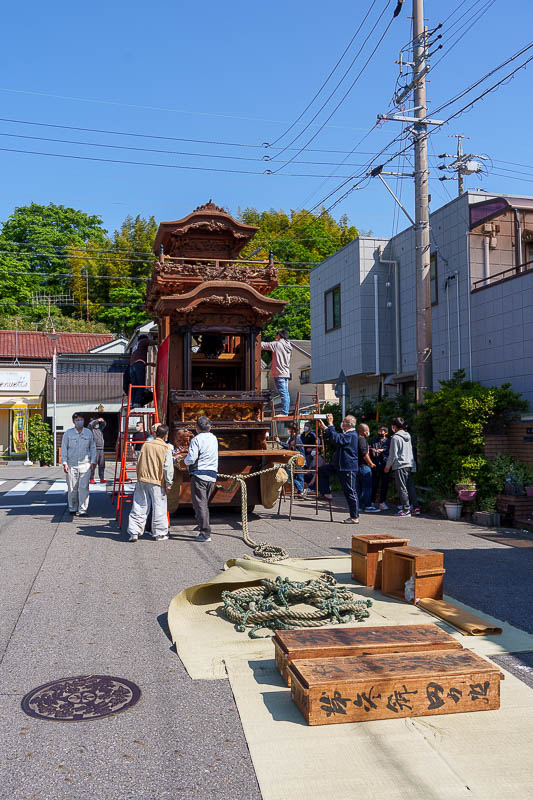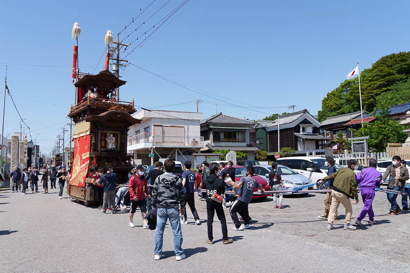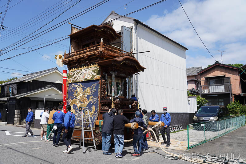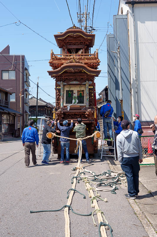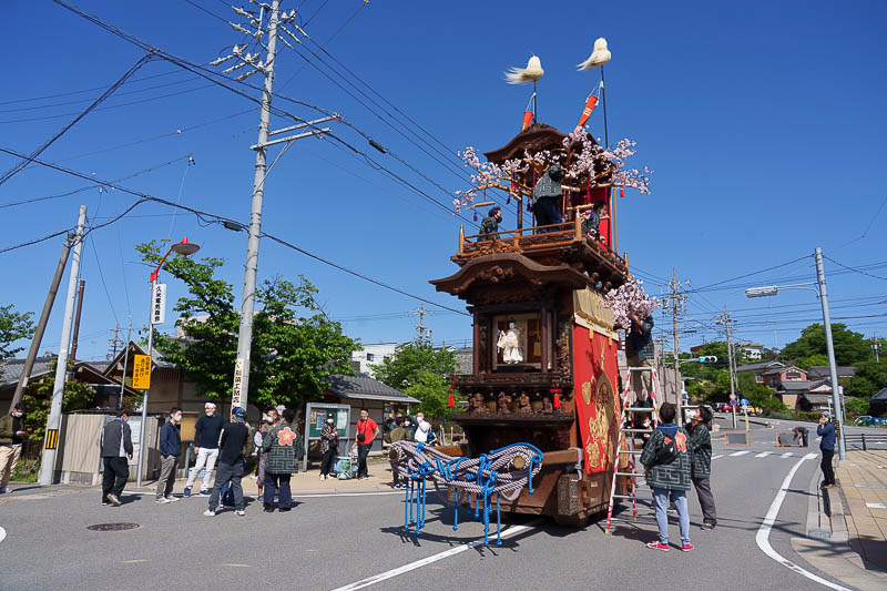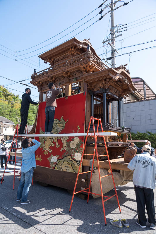 4月17日に山車の組み上げ、4月29日に試し曳きの予定でしたが天候不順で順延。