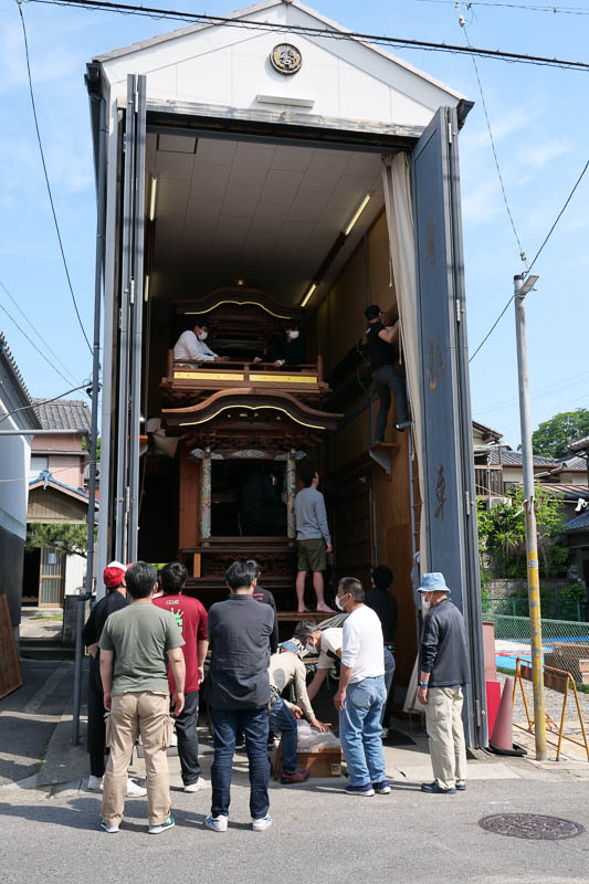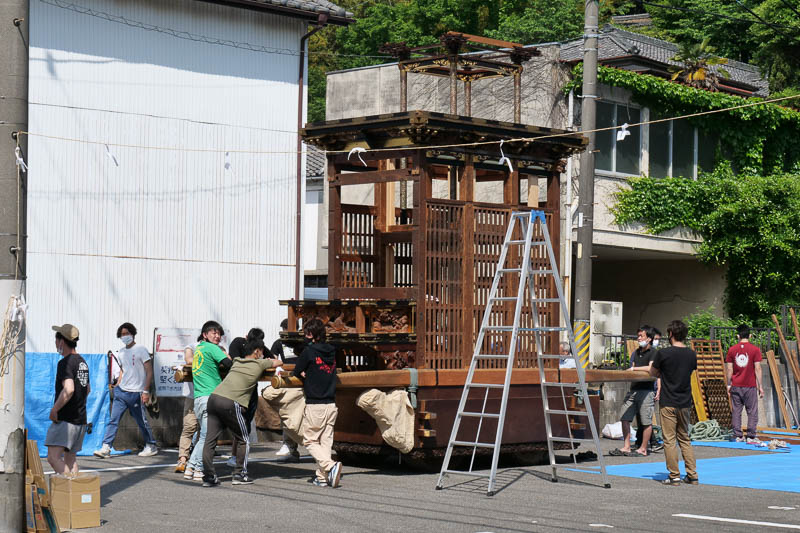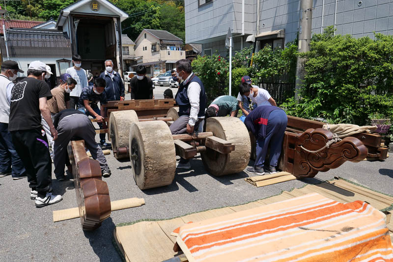 二日間快晴に恵まれた潮干祭は無事終了、翌5日朝から各組で山車の解体が行われました