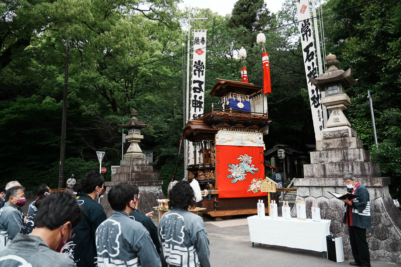 常石車の大幕が新調され奉納奉告祭が常石神社で行われました。