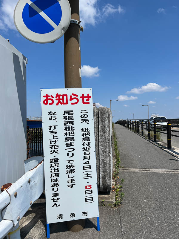 祭りを1週間後に控え、看板には渋滞しますが打ち上げ花火と露店出店はないとのお断りが