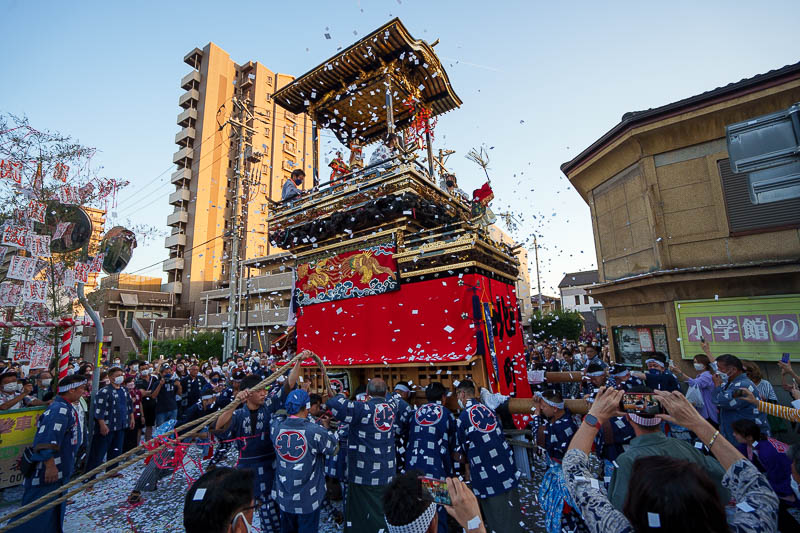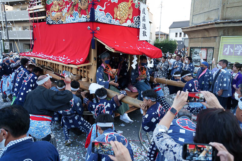 山車を神社に向けます