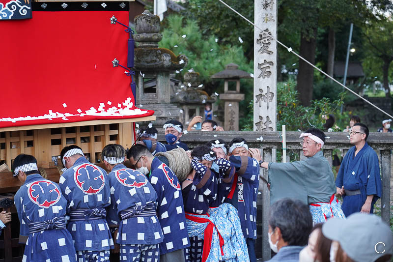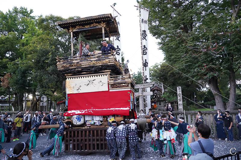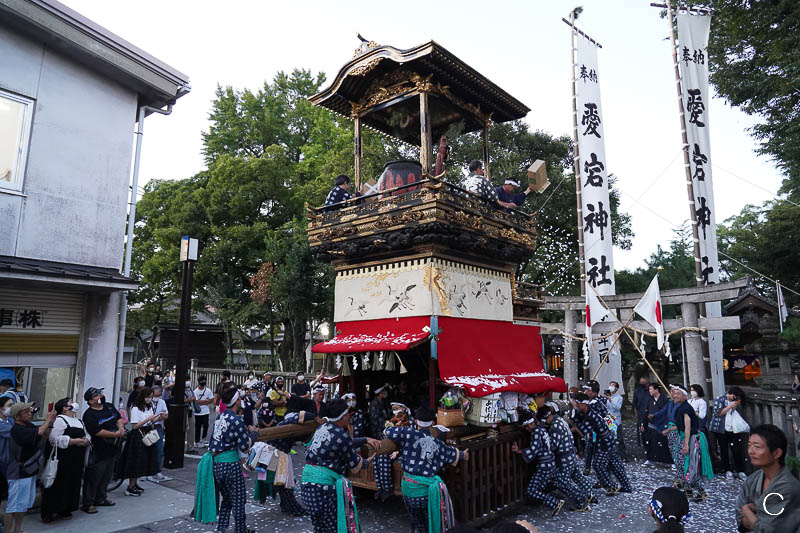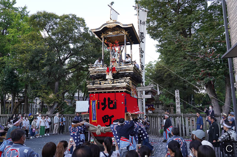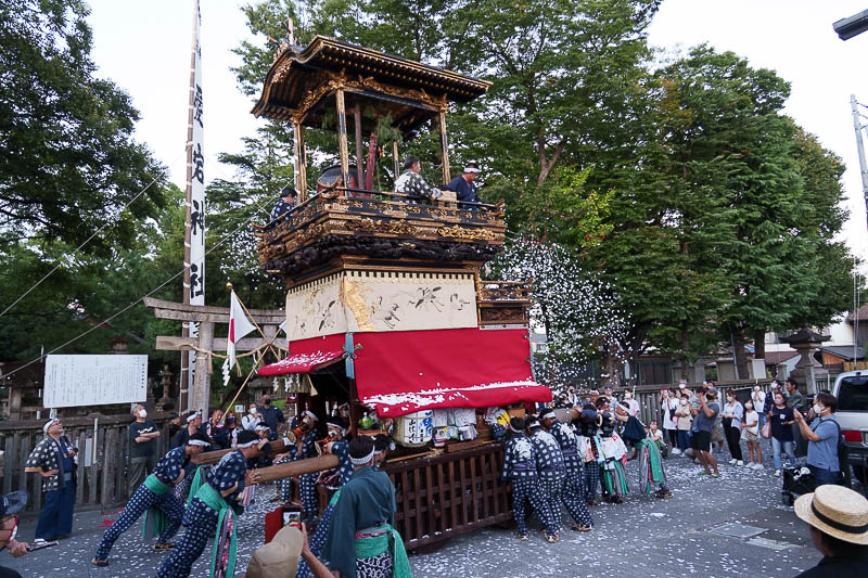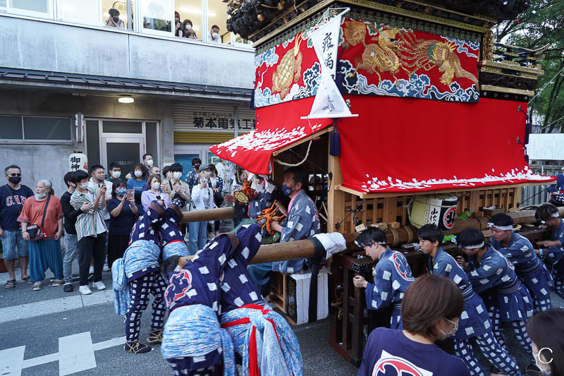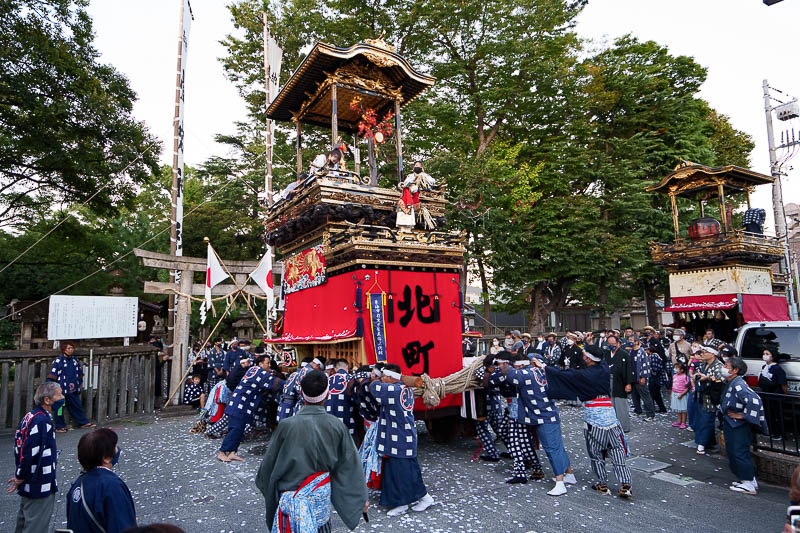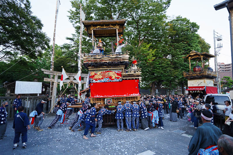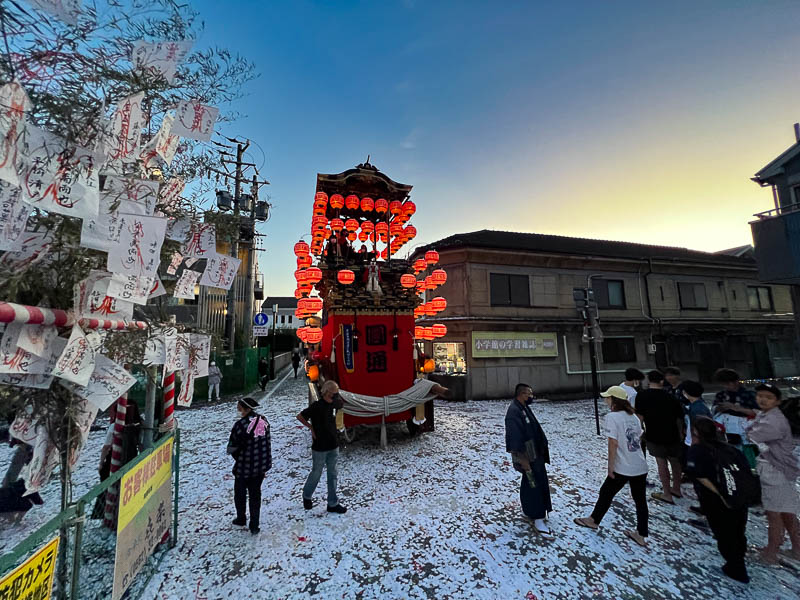 どんてん場の真ん中に据え置かれた公通組の山車 二度とないであろうレアな光景でしょうか