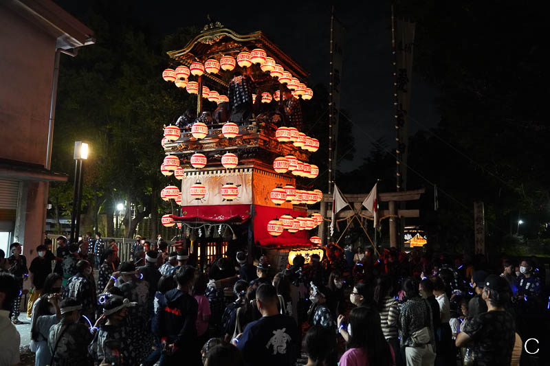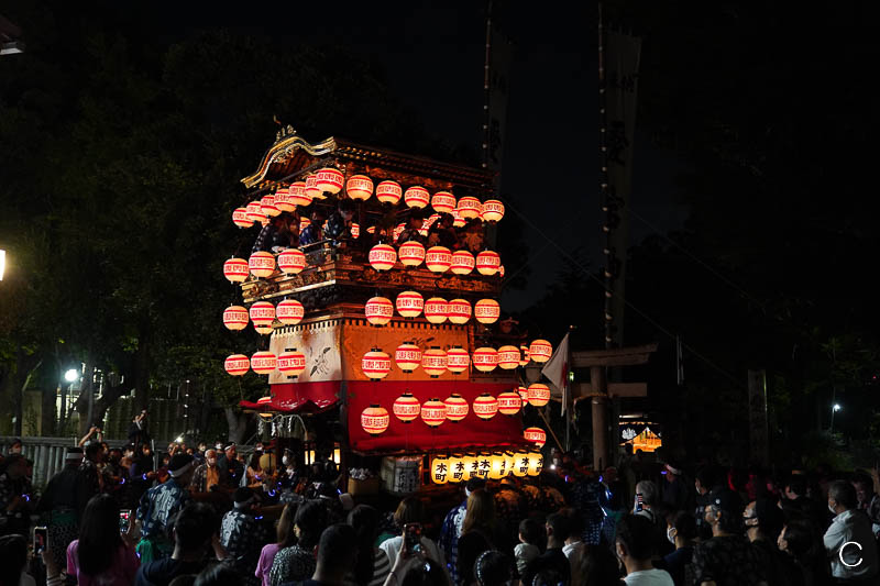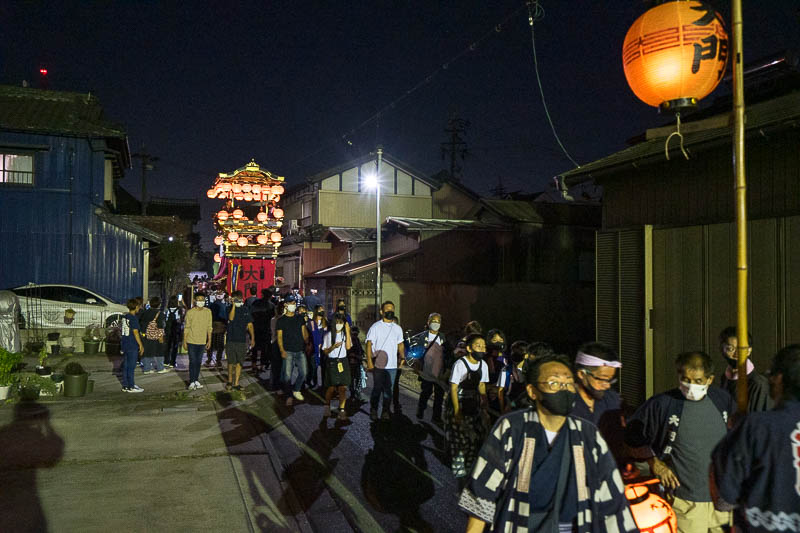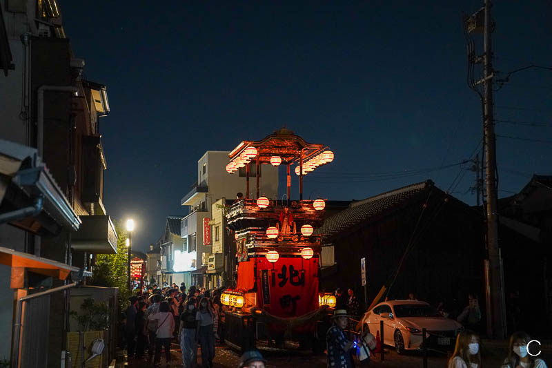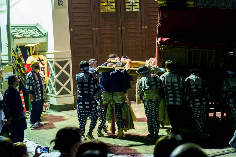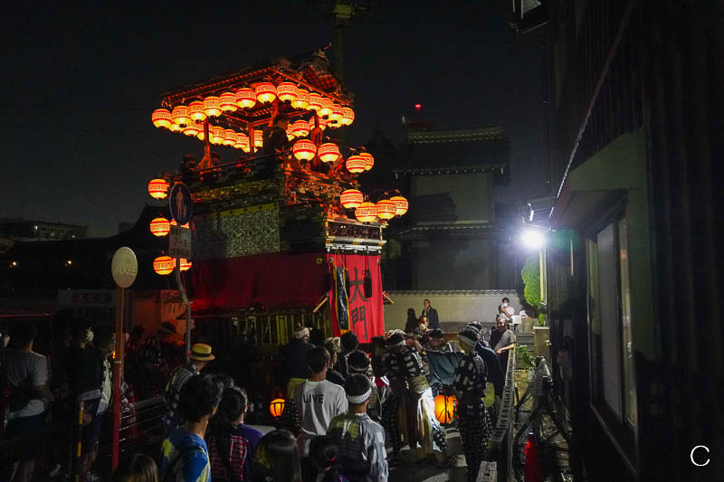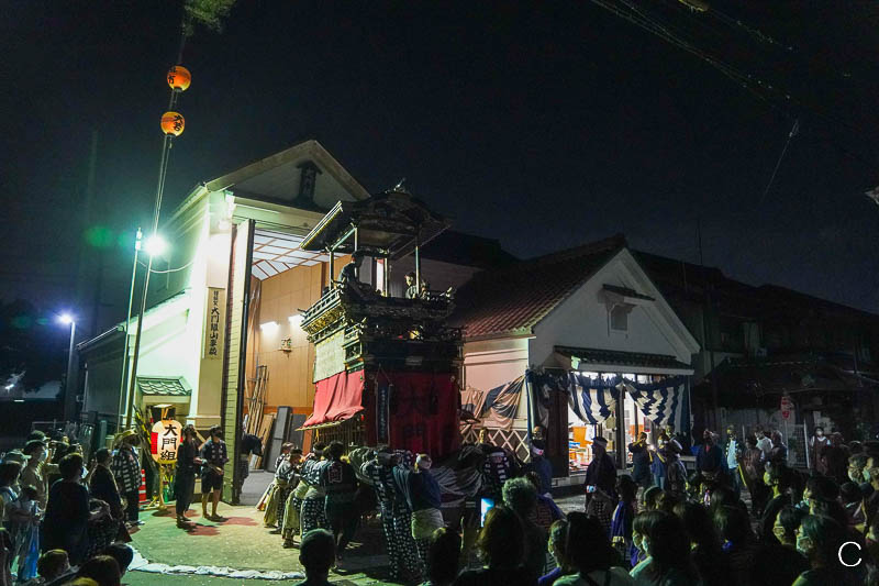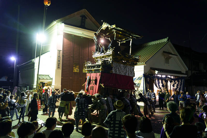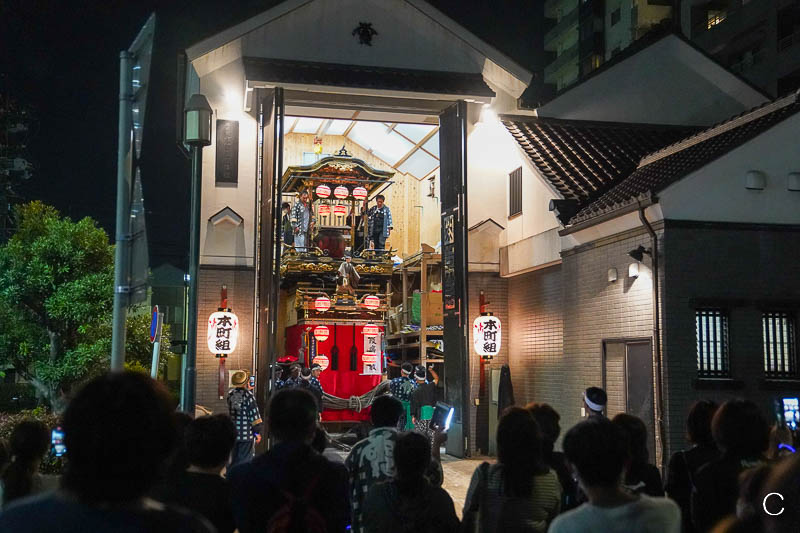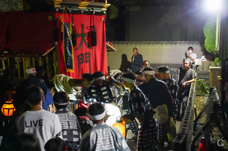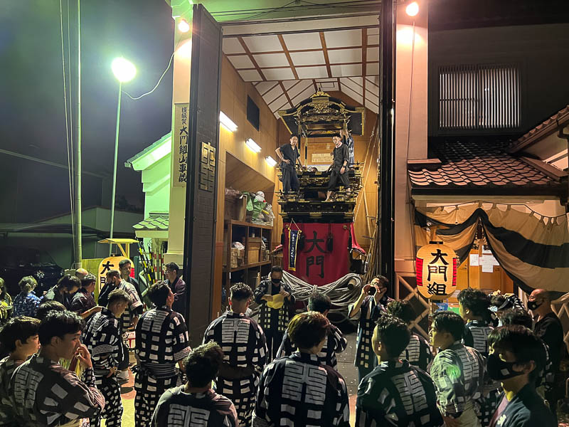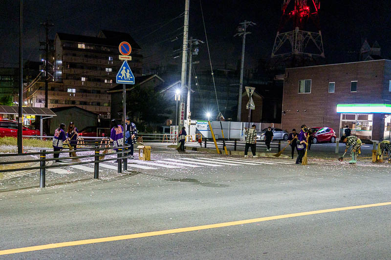 21:20 山車を蔵に納めると紙吹雪の舞った辻を掃除します