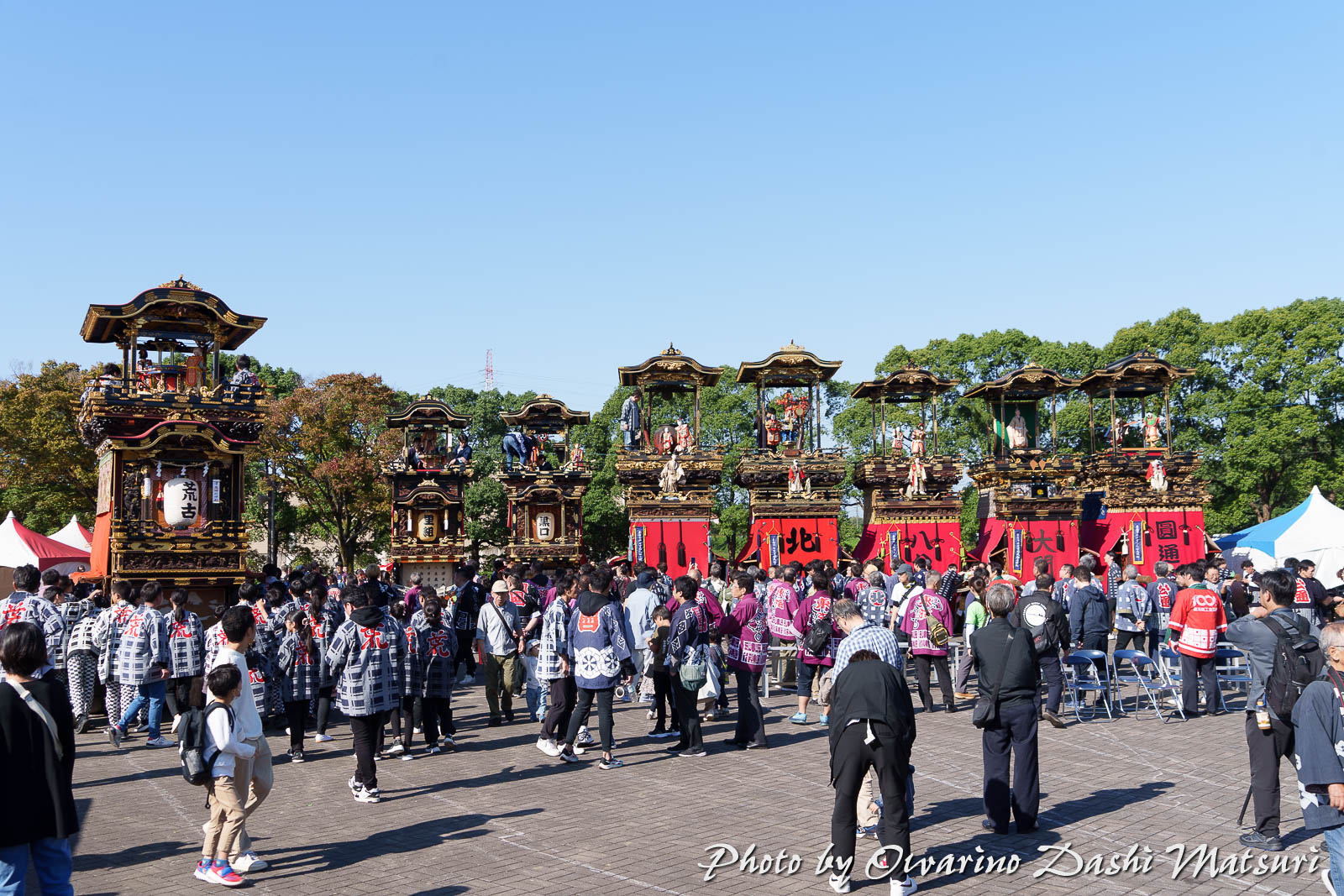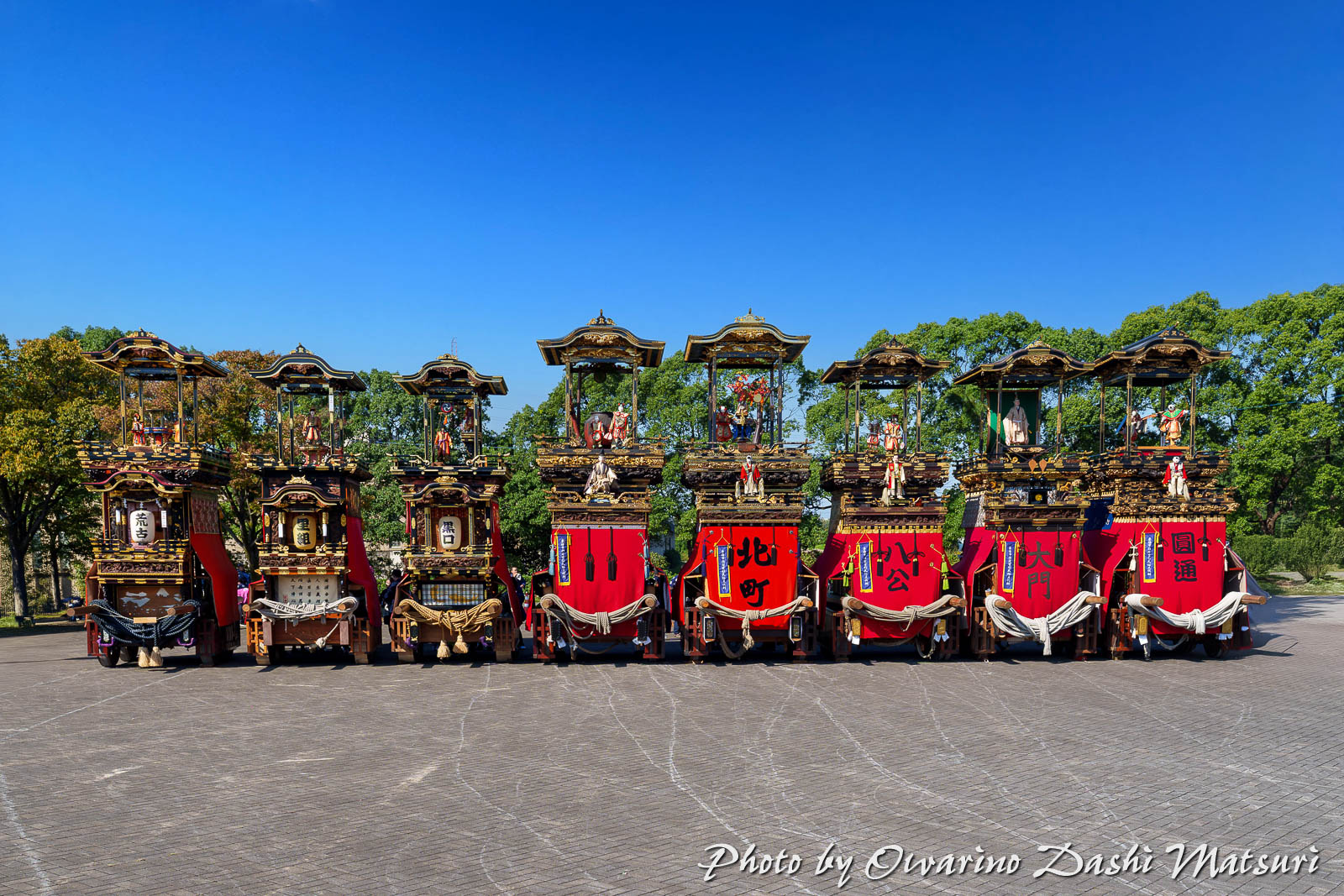 会場に8輌の山車が整列しました