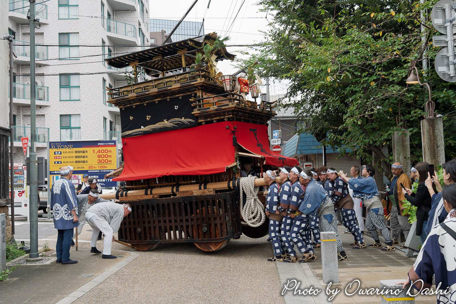 曳き出す前の儀式はコンパネ敷き