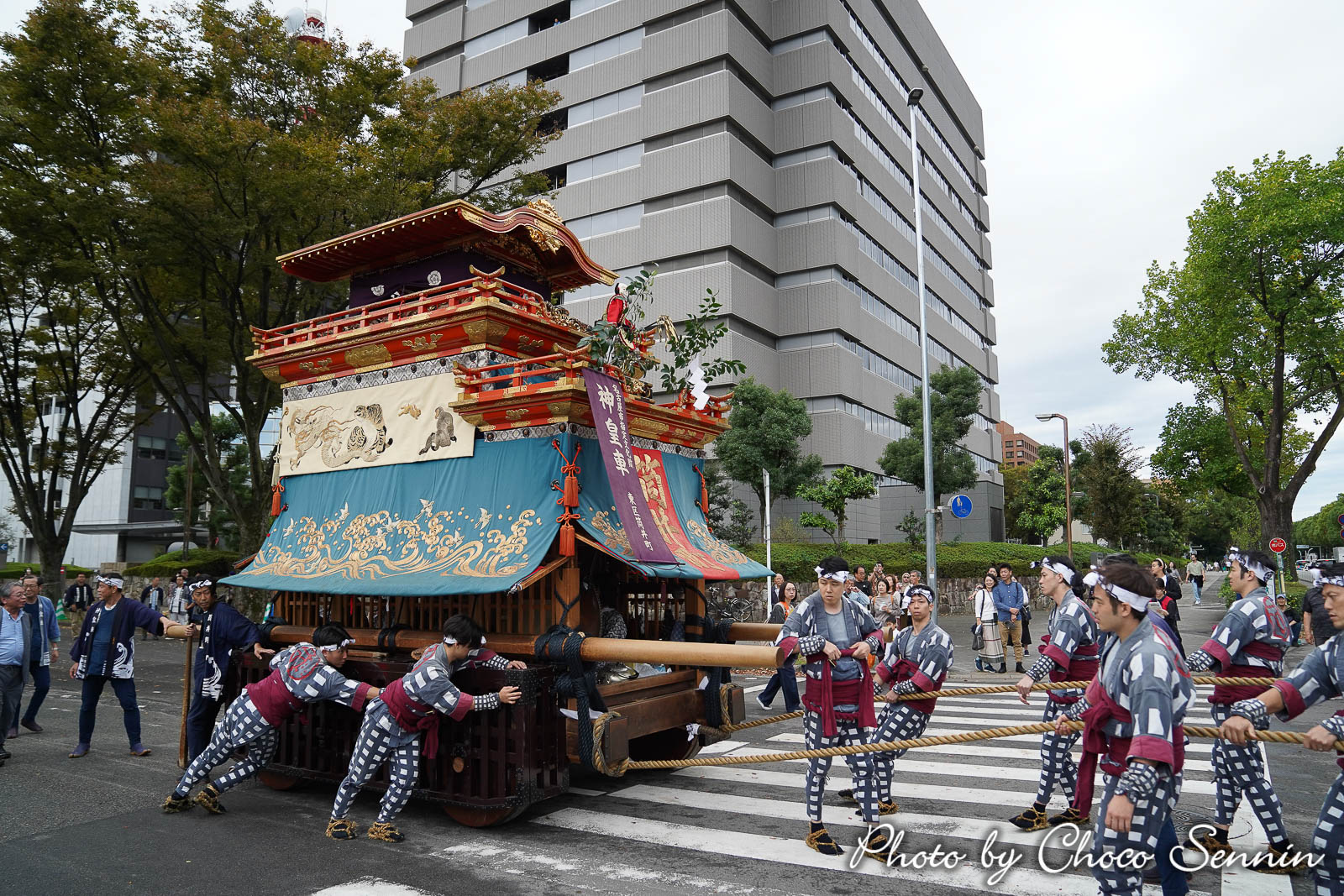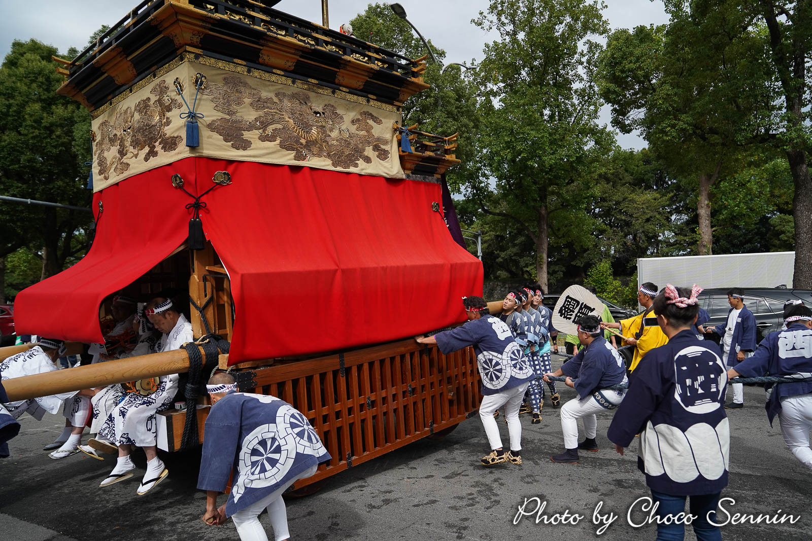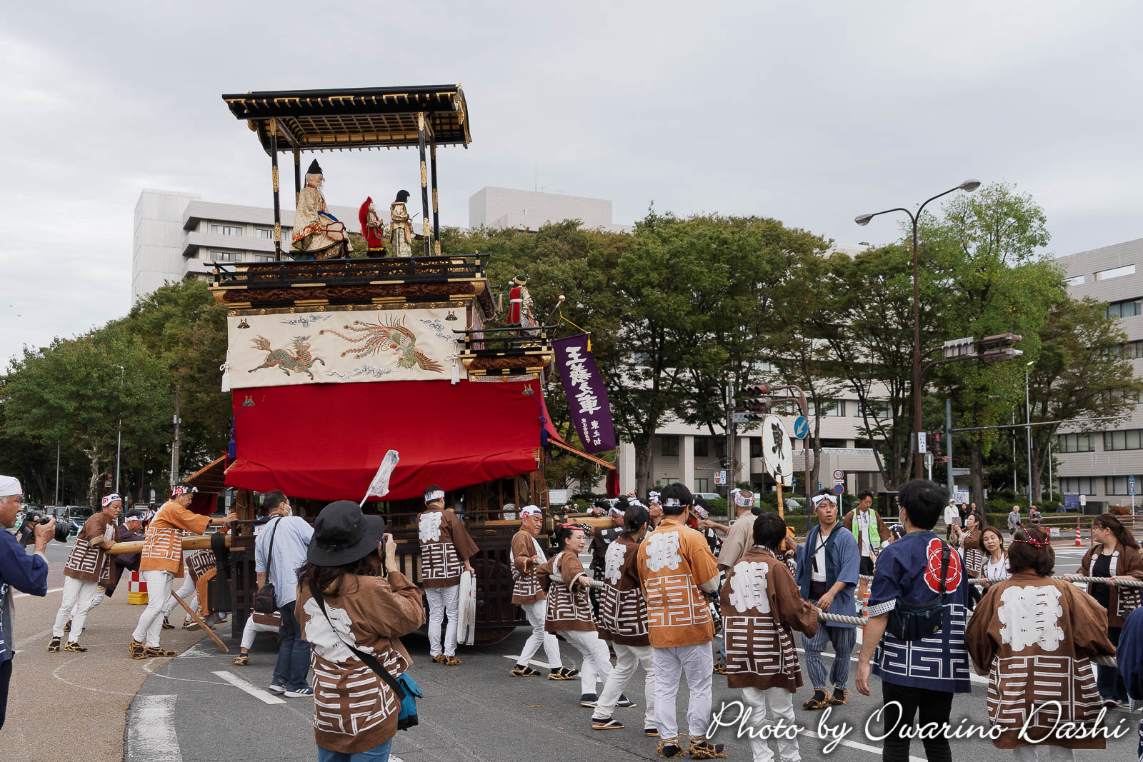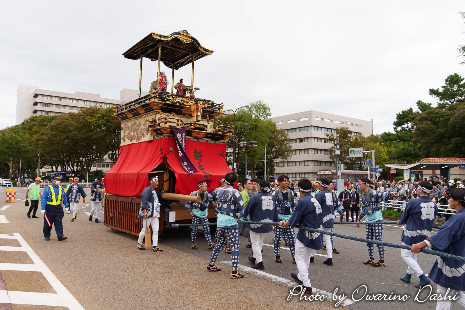 10:16 紅葉狩車が曳き出し、市役所に向かいます