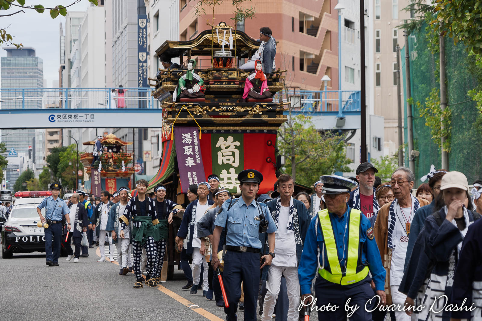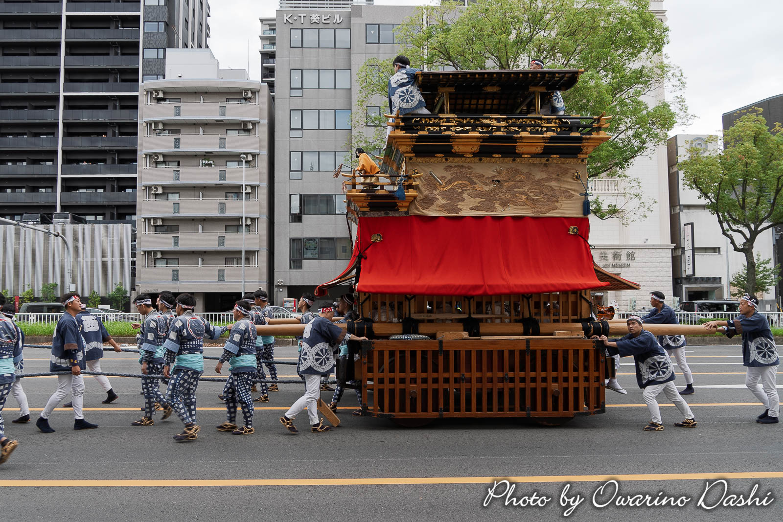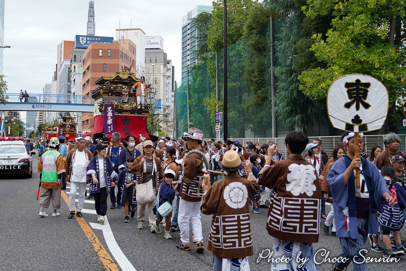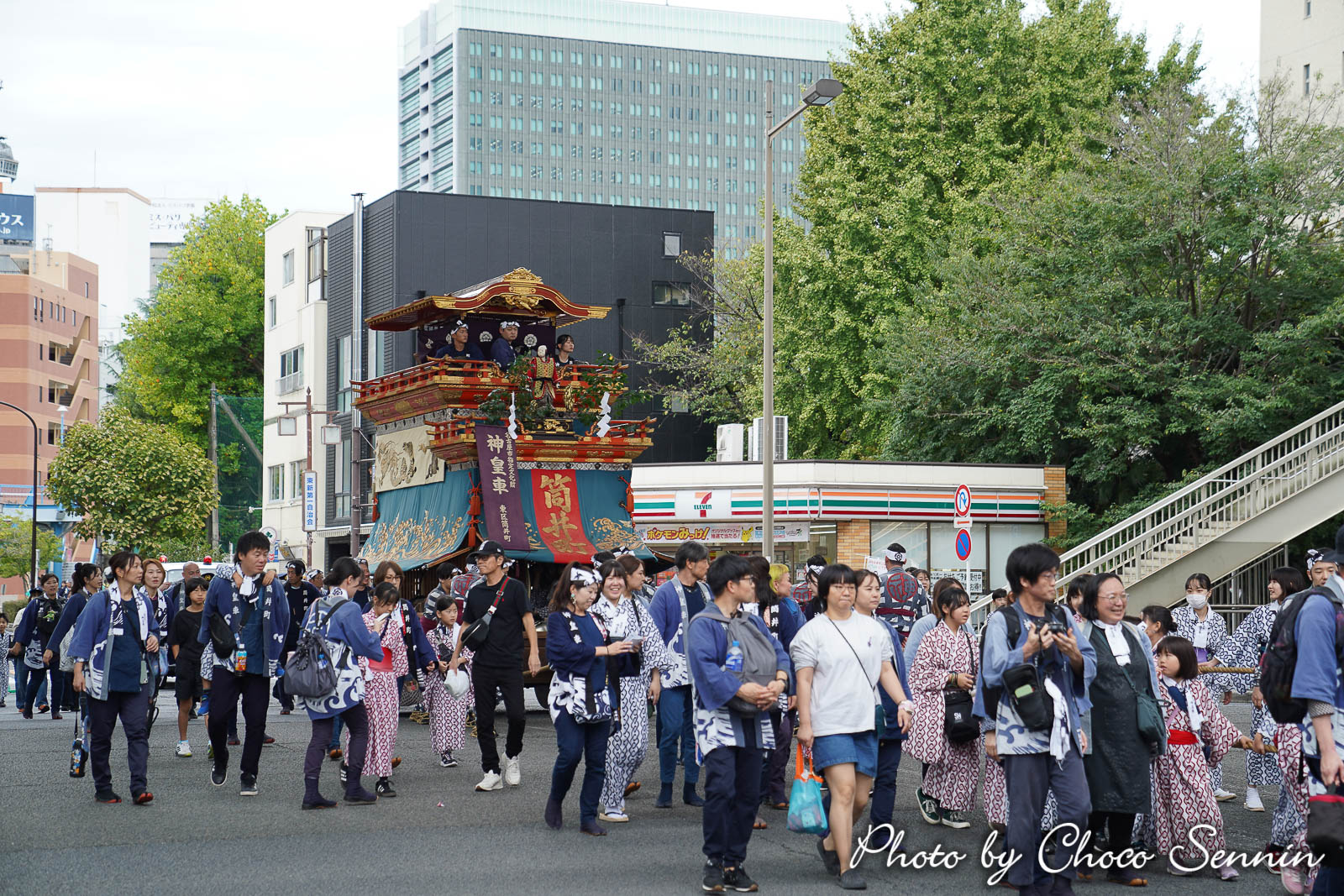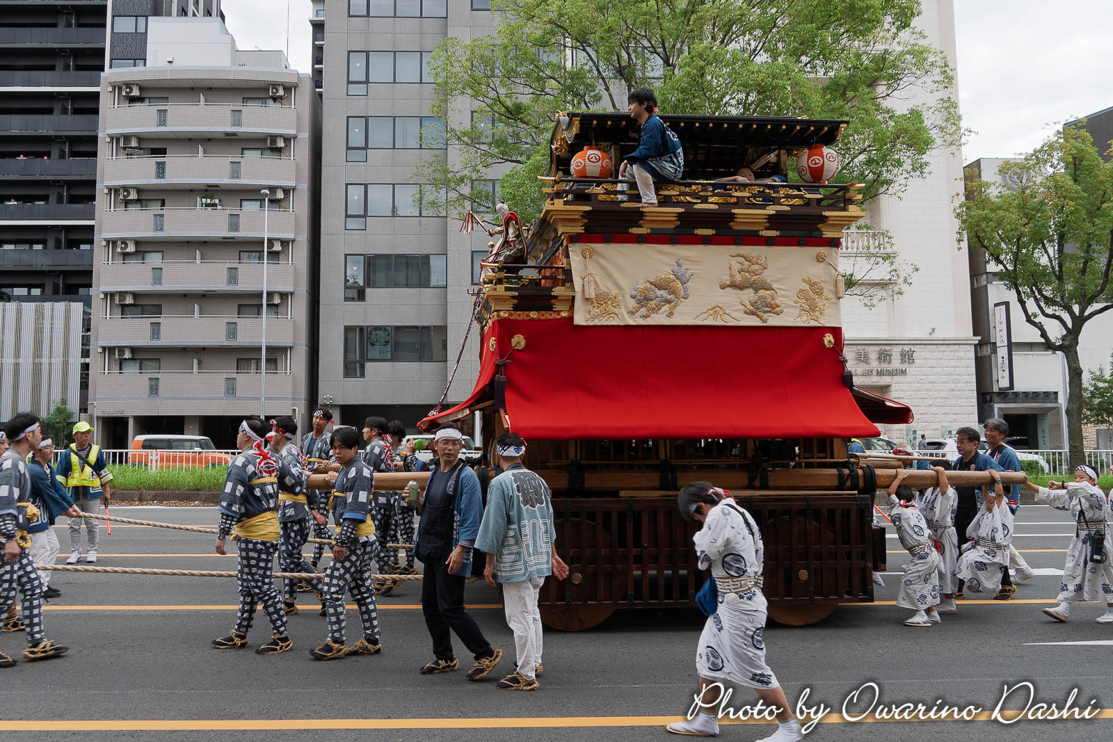 栄交差点で名古屋まつり山車揃終了後に東桜小学校北側で休憩した東区の山車5輌です。