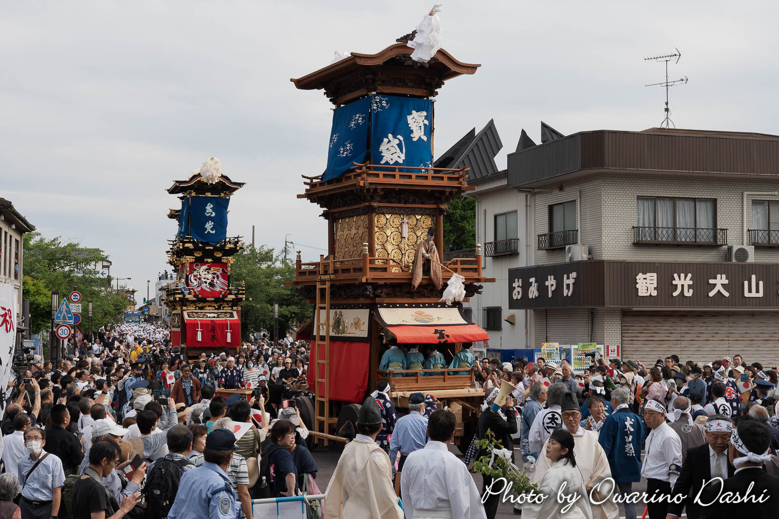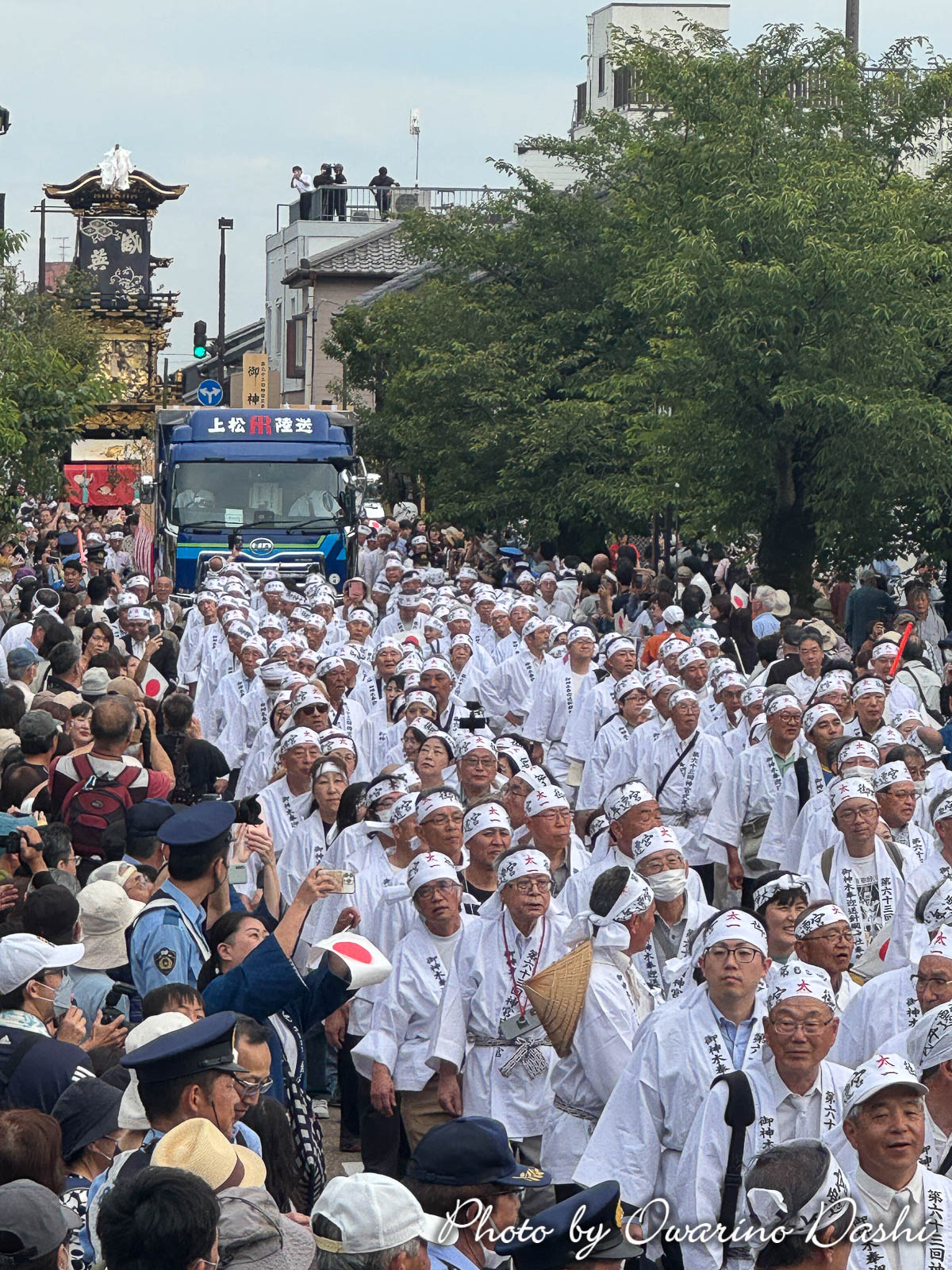 犬山祭の車山6輌が、御神木に前後して供奉しました。