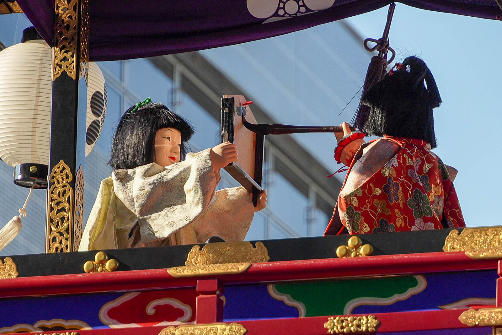 甕破り山車、岩戸山、大入道、菅公、3輌の山車と鯨船の勢州丸が登場しましたが、今年もからくり人形を中心に見物。